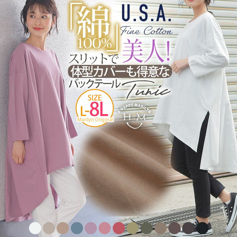 6. 大きいサイズ 綿100% ストンと楽ちん 体型カバーが得意な USAコットン バックテール チュニック | 大きいサイズの通販ならハッピーマリリン