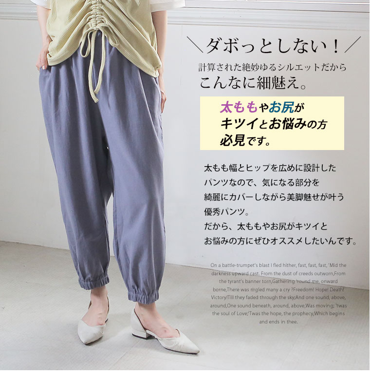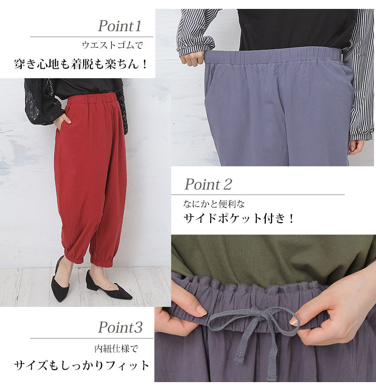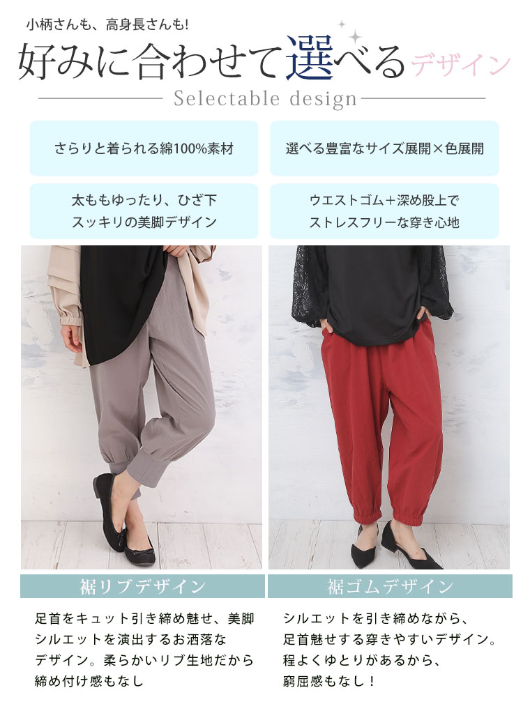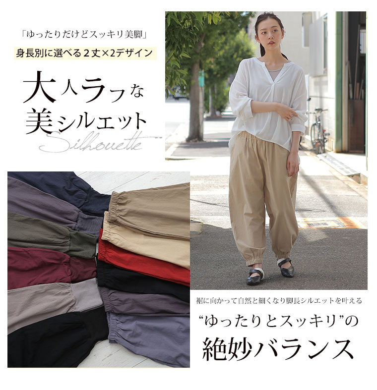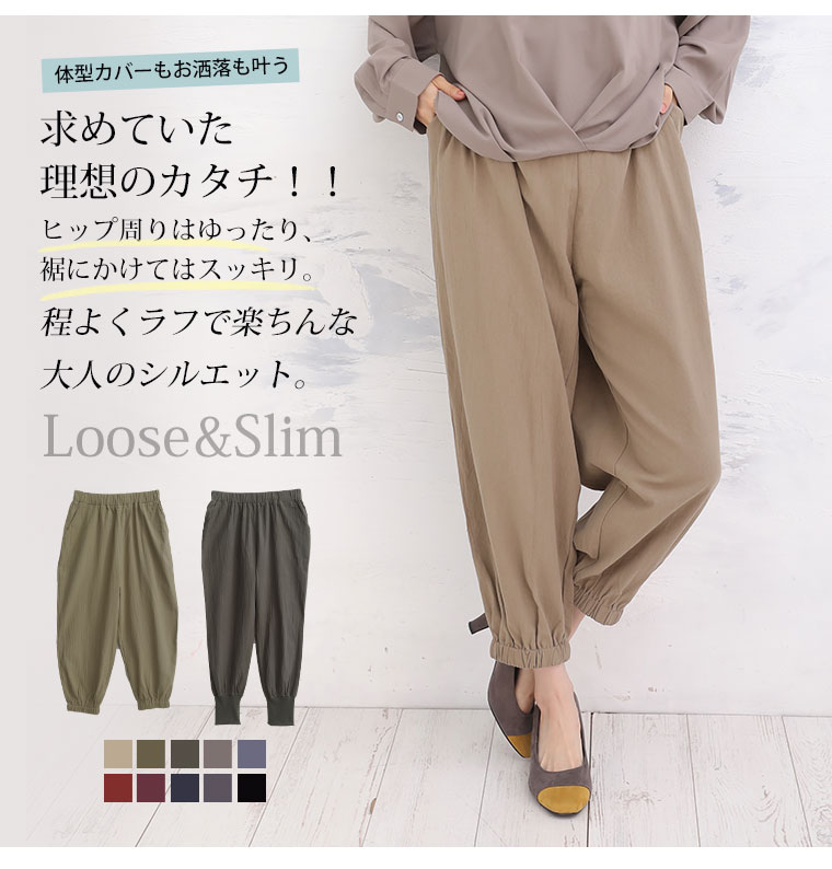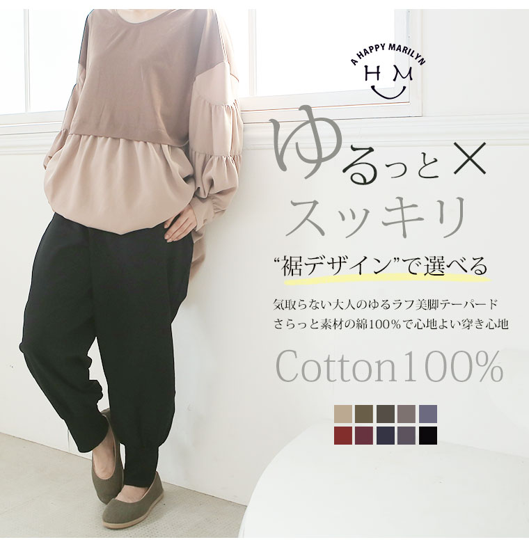 綿100%さらっと心地よい美脚テーパードパンツ