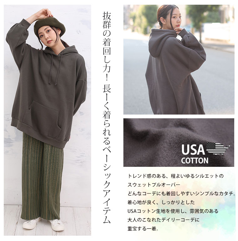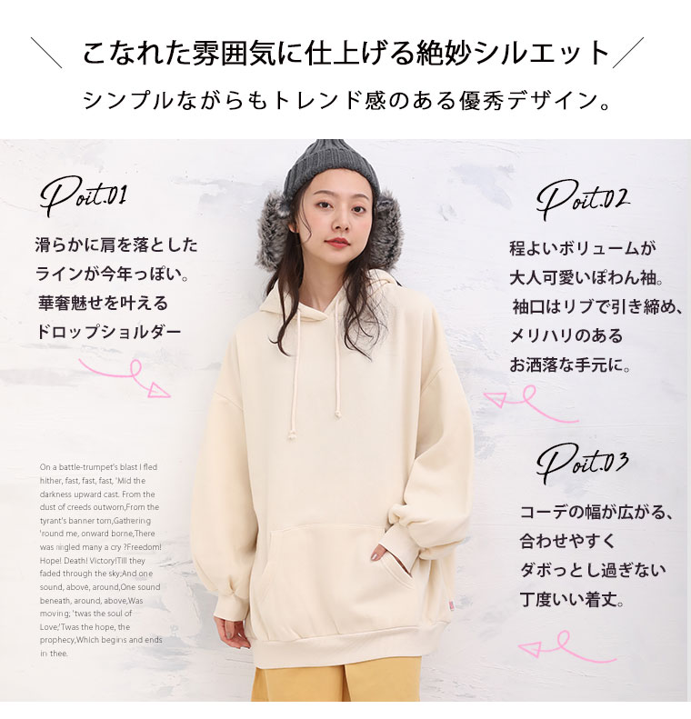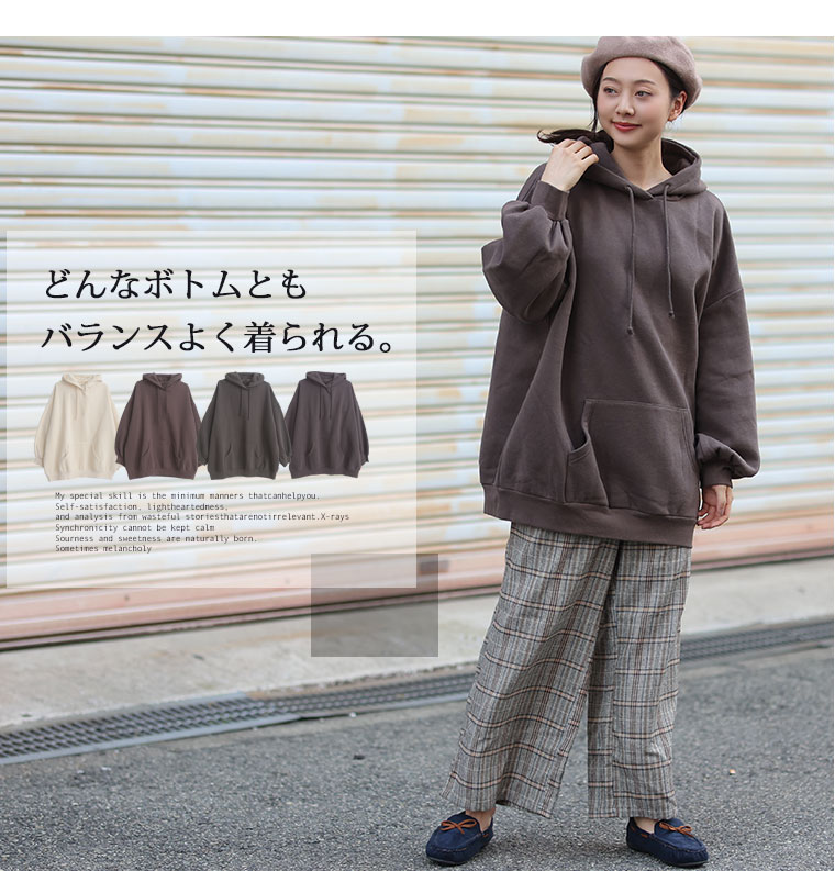 トレンド感のある程よいゆとりのスウェットパーカープルオーバー