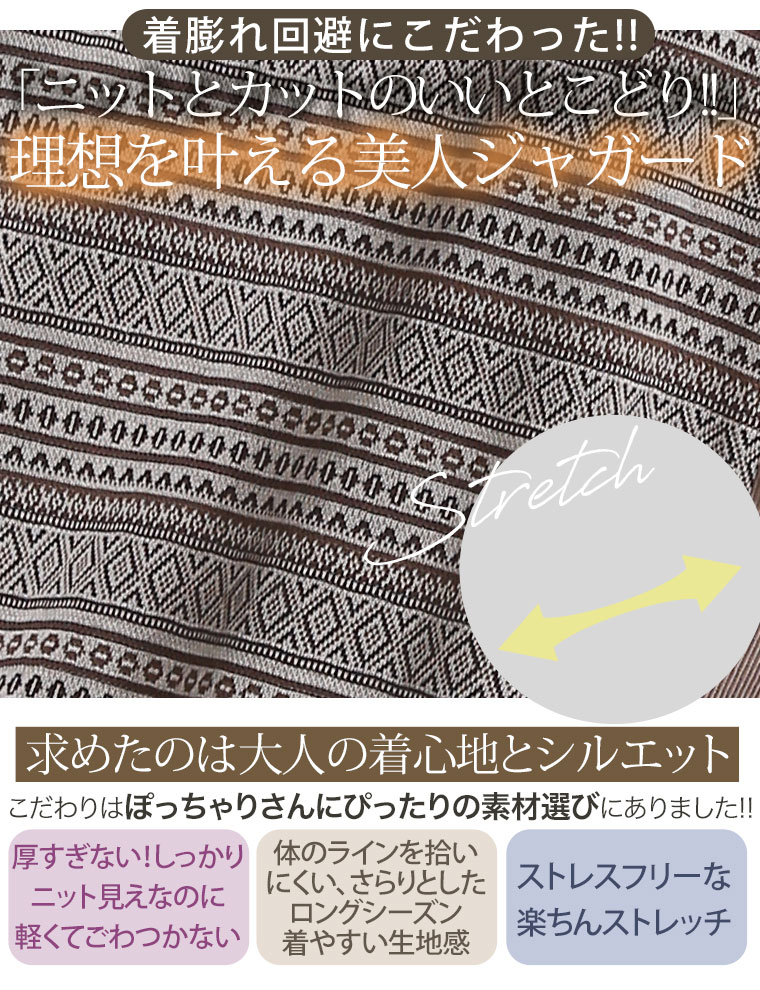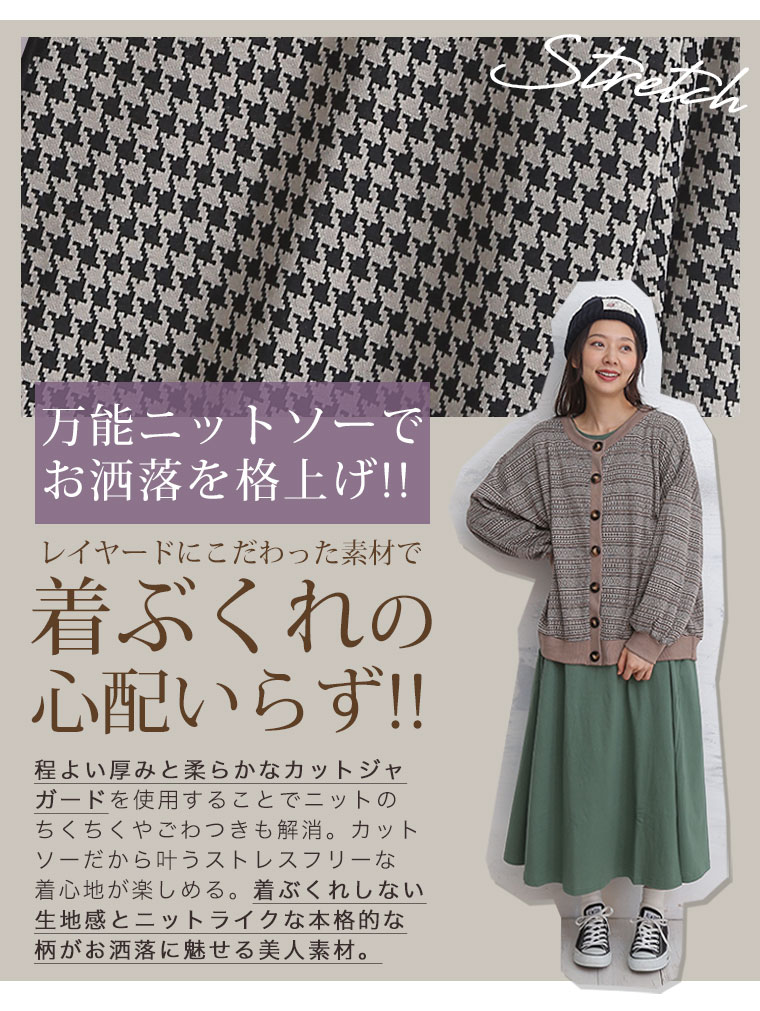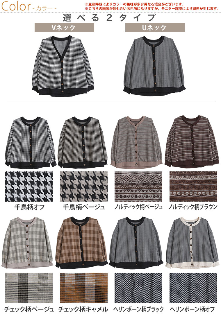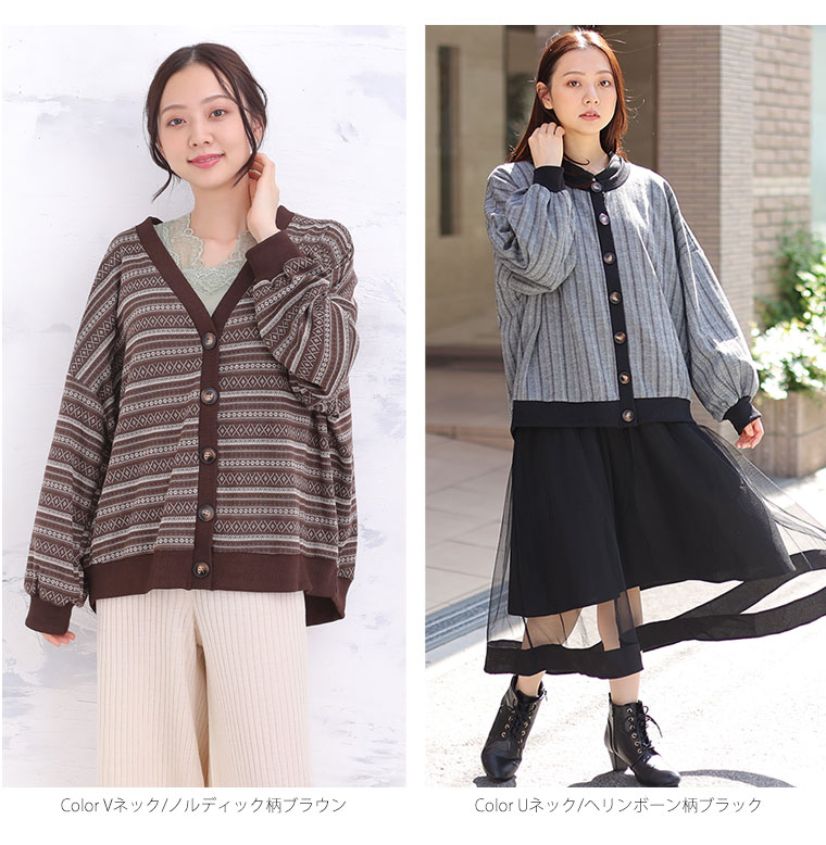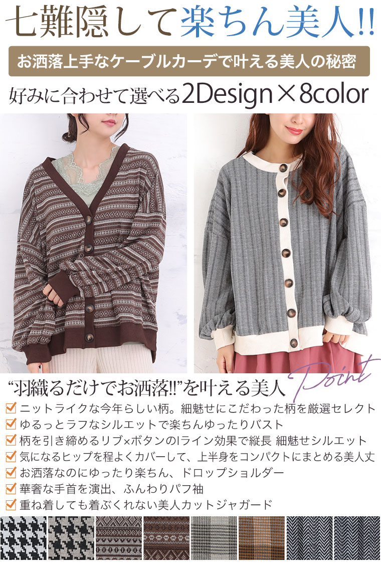 UネックとVネックで選べる!着ぶくれ回避で着回し便利なカットジャガードカーデ