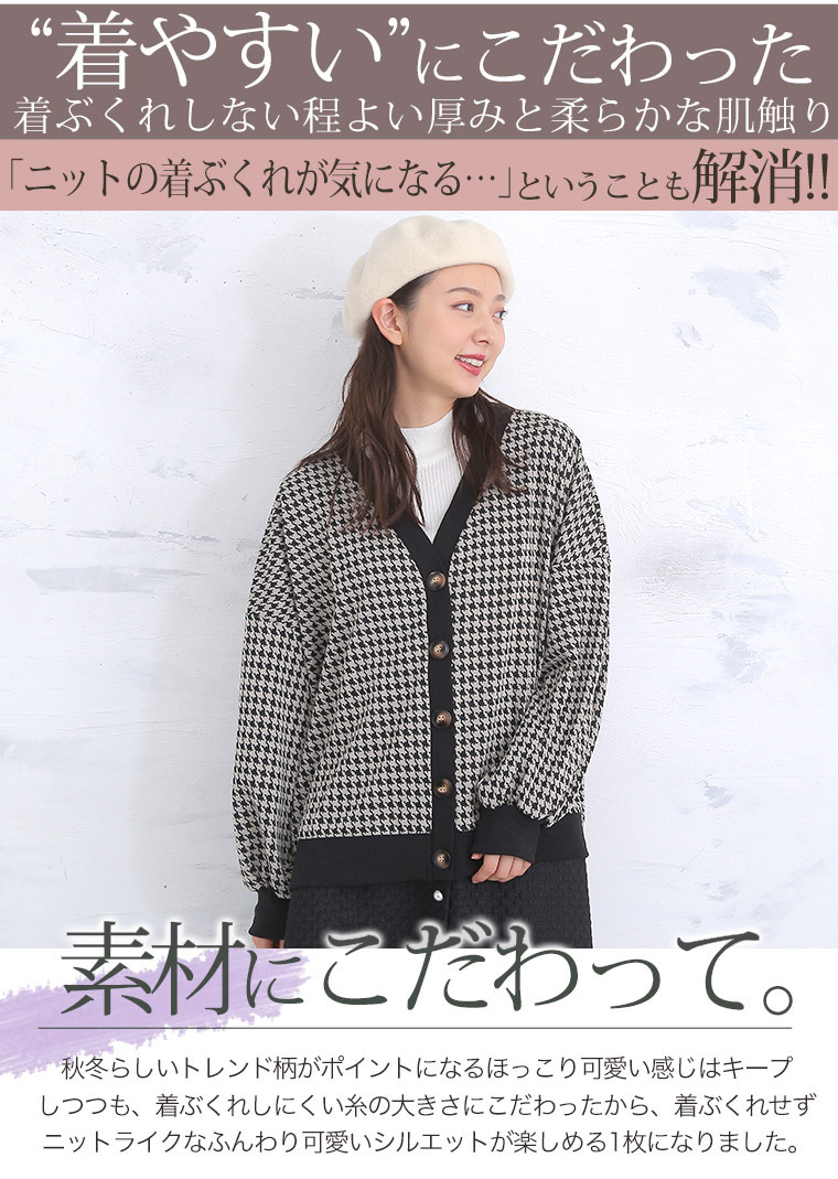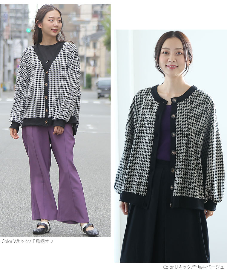 (Vネック/千鳥柄オフ)