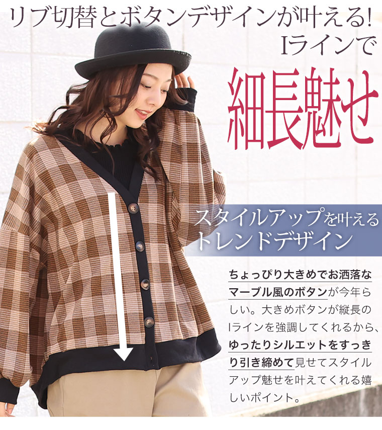 (Vネック/チェック柄キャメル)【類似品】