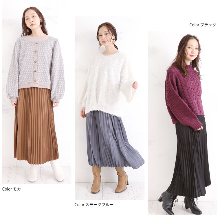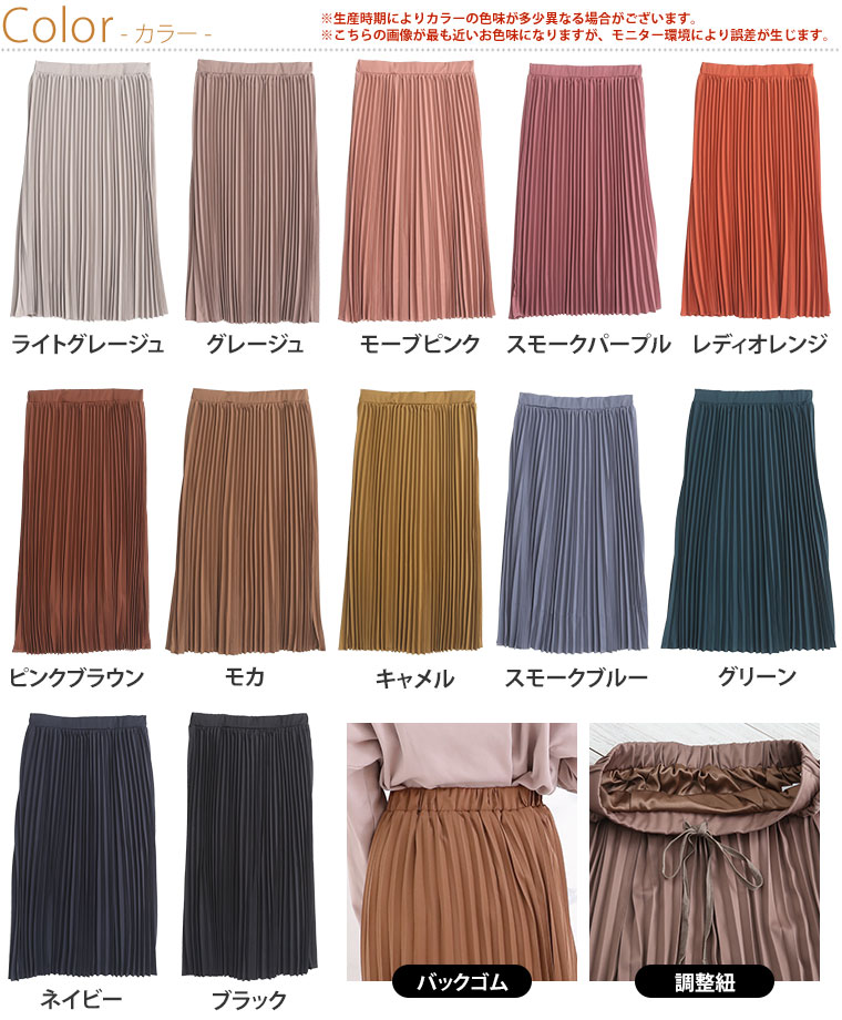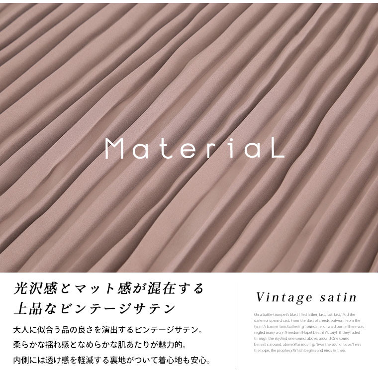 ビンテージサテンで上品な彩り。艶感プリーツスカート