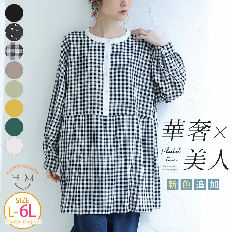 美人プリーツで360度きれい魅せバンドカラーチュニック