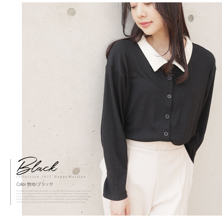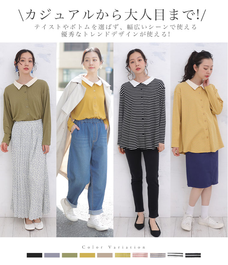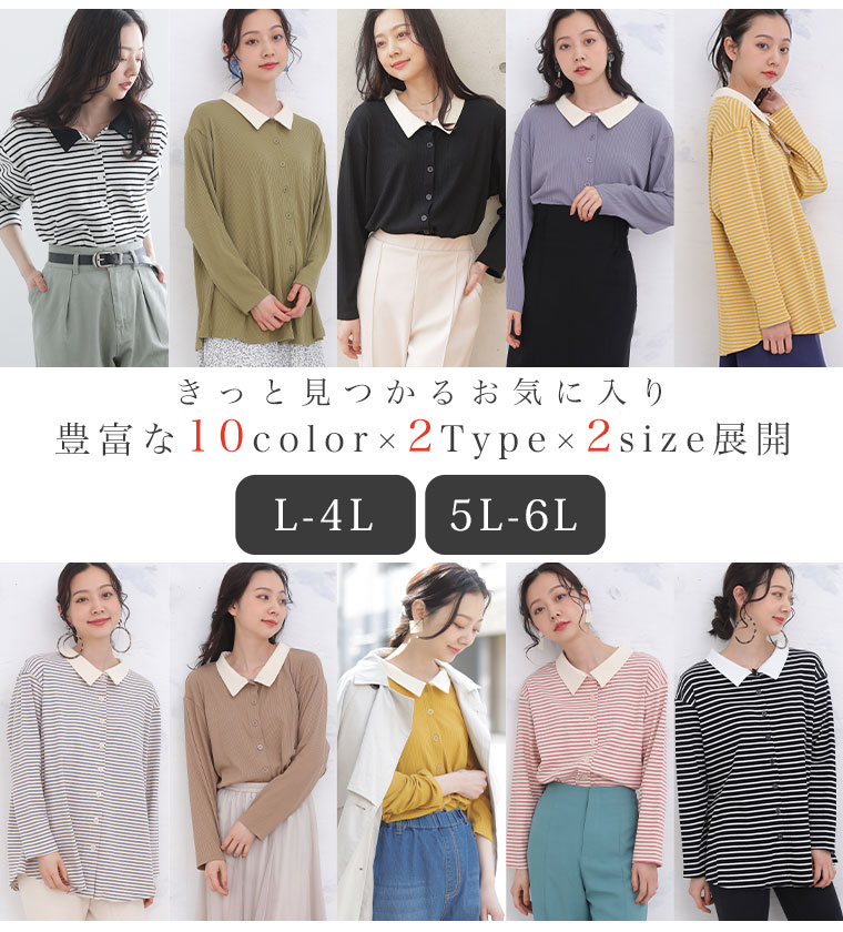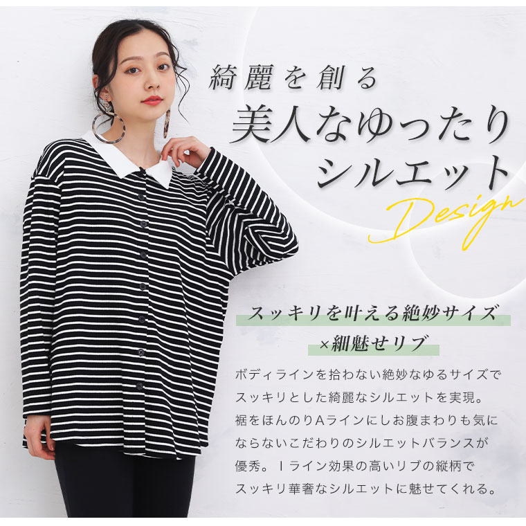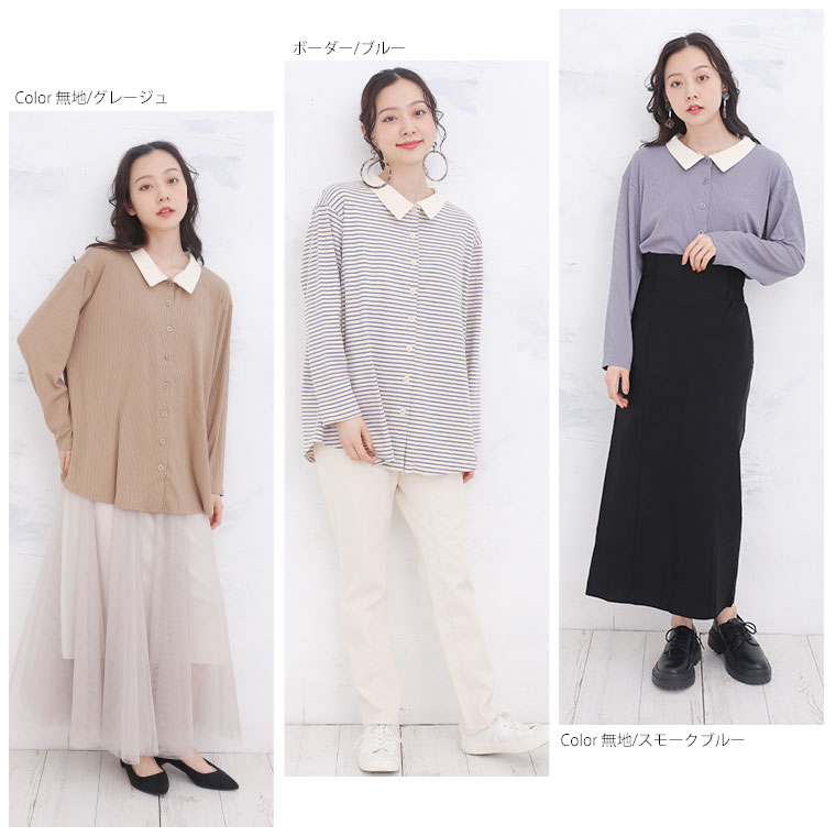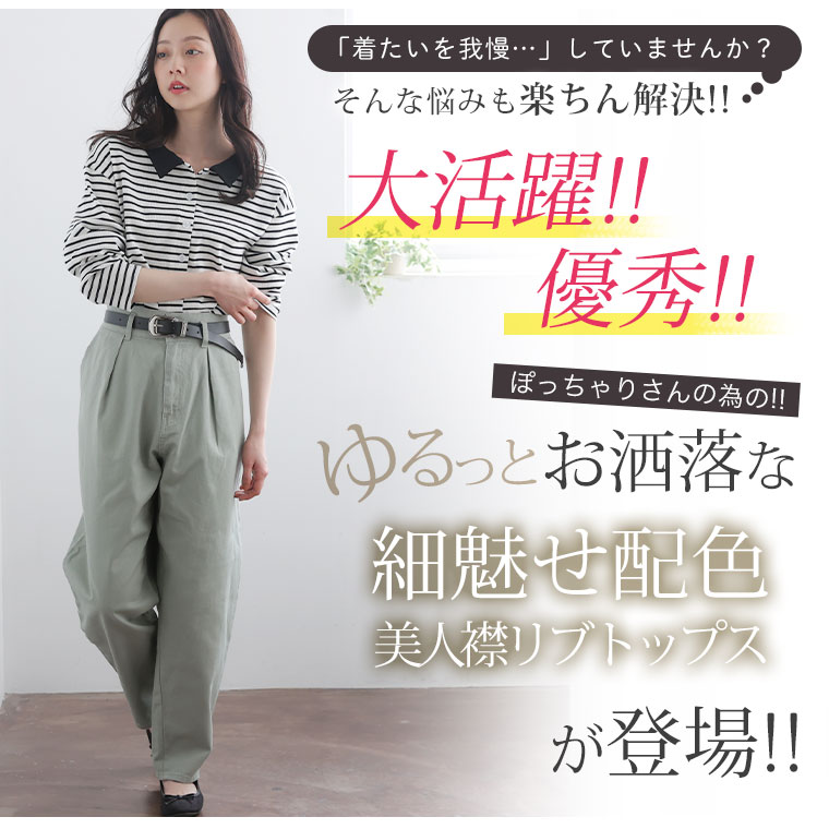 無地とボーダー2Typeから選べる 華奢魅せリブトップス