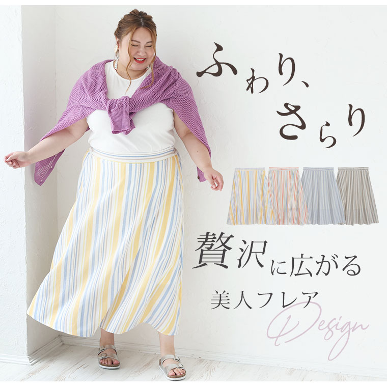 lafarfaモデルプロデュースの涼し気なストライプフレアスカート