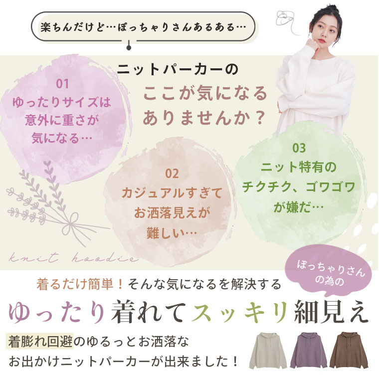 大きいサイズ ぽっちゃり的 優秀 ニット パーカー