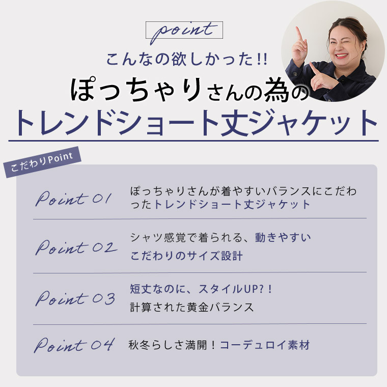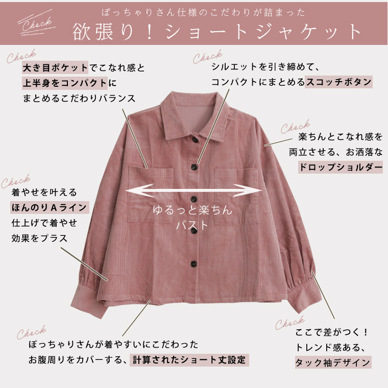 【ラファモプロデュース】ポケット付 コーデュロイ コンパクトジャケット
