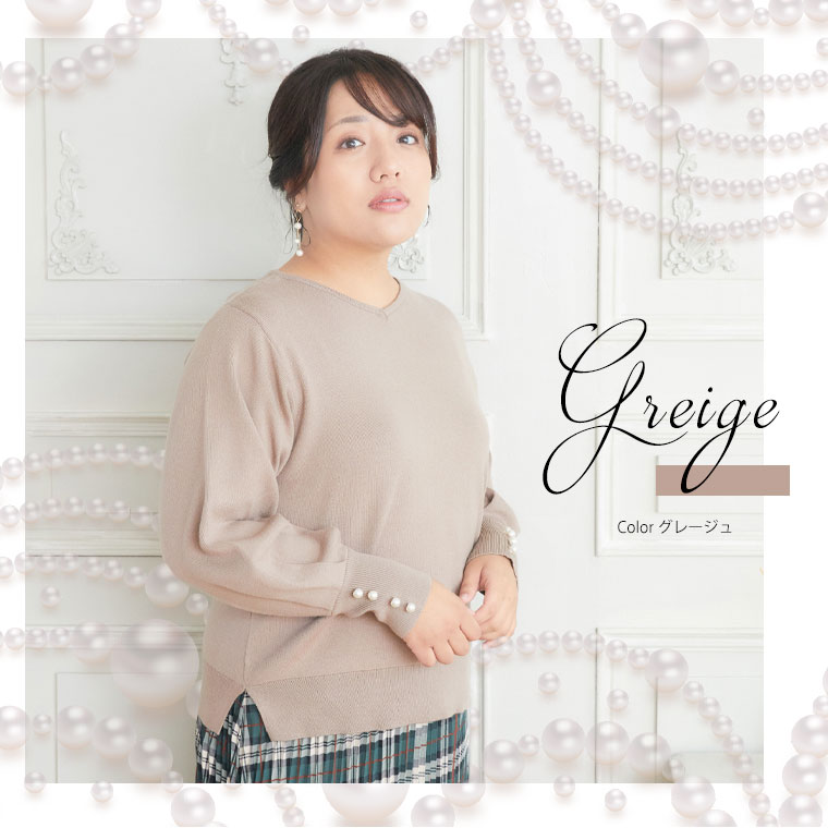 6. 大きいサイズ 【Hinaさんコラボ】 パール袖 もっちりニット プルオーバー【骨格ウェーブ】