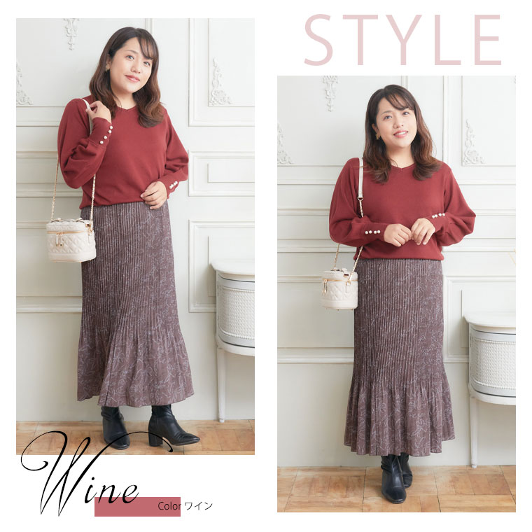 オリジナル ニット セーター LL 3L 4L 5L 6L 冬 冬物 冬服 ぽっちゃり ゆったり かわいい おしゃれ カジュアル ナチュラル プラスサイズ コラボアイテム 【Hinaさんコラボ】 パール袖 もっちりニット プルオーバー【骨格ウェーブ】
