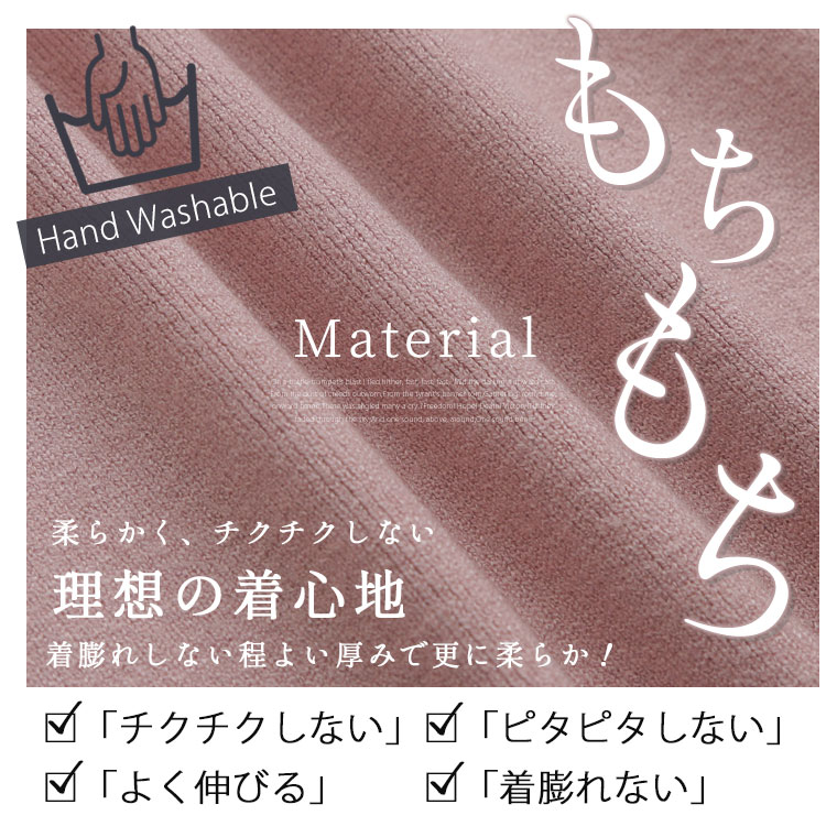 ■着用感:ちょうどいい、■着丈:ヒップ半分、■バスト:ちょうどいい、■腕回り:ちょうどいい、■袖口:ちょうどいい、■袖丈:長袖、■首回り:ちょうどいい、■ウエスト:-、■ヒップ:-、■太もも:- ●もっちりとした肌触りで、よく伸びて着心地が良いです。シンプルだけど上品に可愛いデザインが気に入りました。