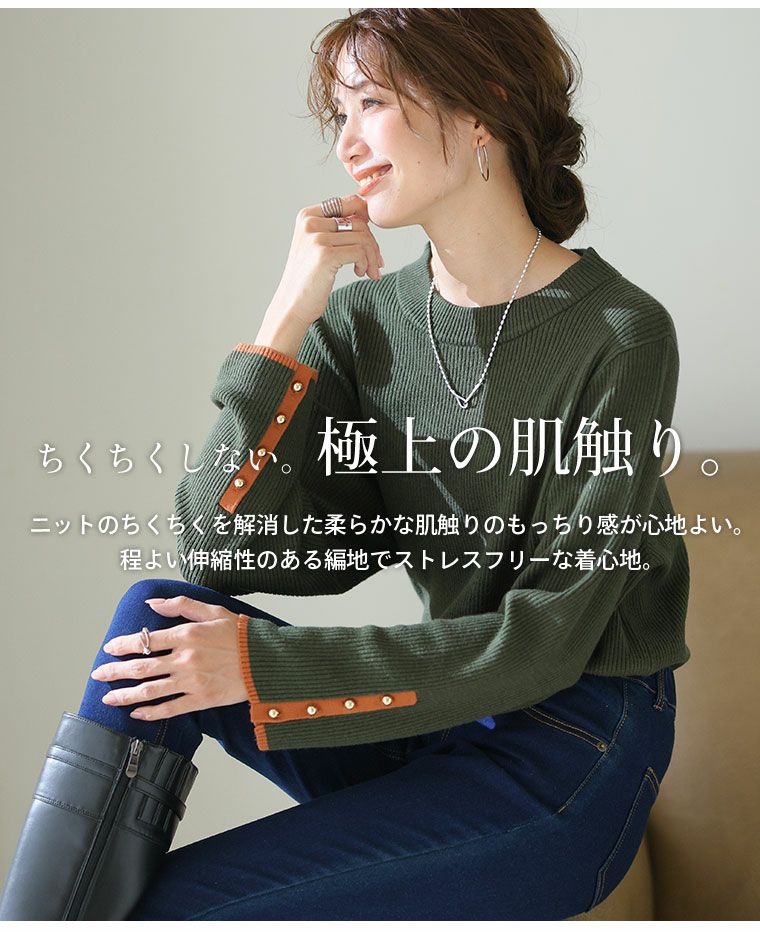 ちくちくしない。極上の肌触り。ピタピタしない!配色美人リブニット