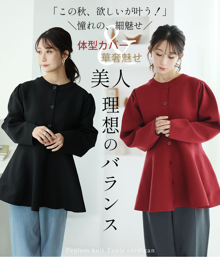 洗練!着痩せ美人なペプラムニットカーデチュニック