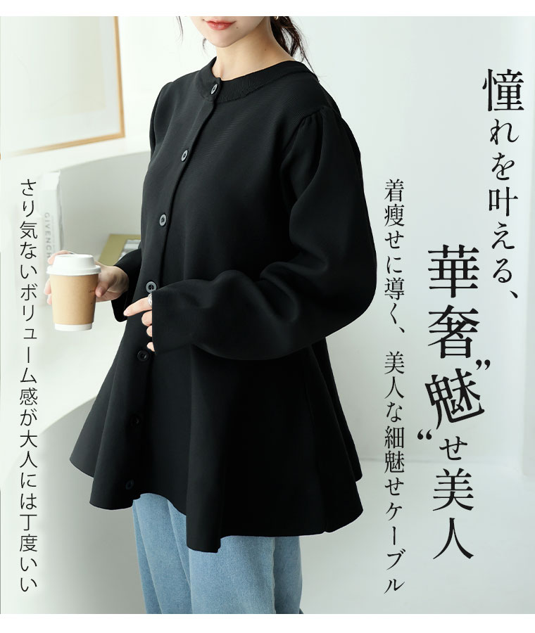 カーデガン 羽織り ニット セーター LL 3L 4L 5L 6L 長袖 冬 冬物 冬服 ぽっちゃり ゆったり お腹 嬉しい! 体型カバーと細魅せ叶える! 着痩せ美人な ペプラム ニット カーデ チュニック