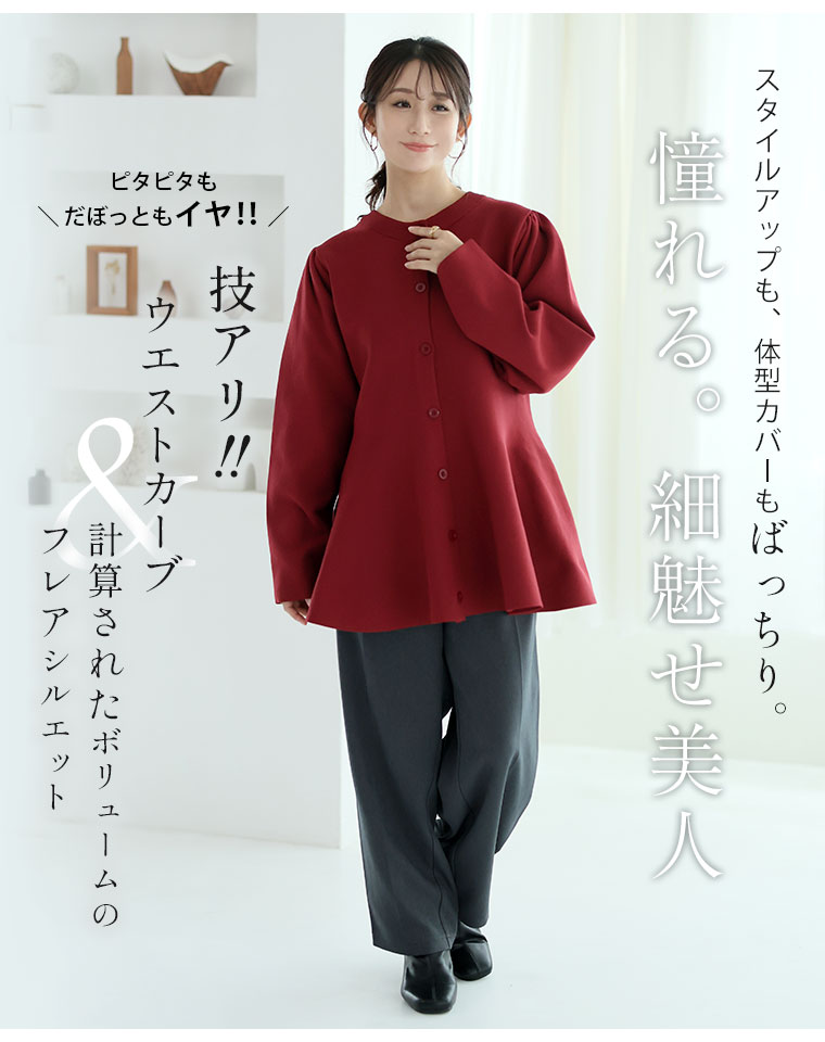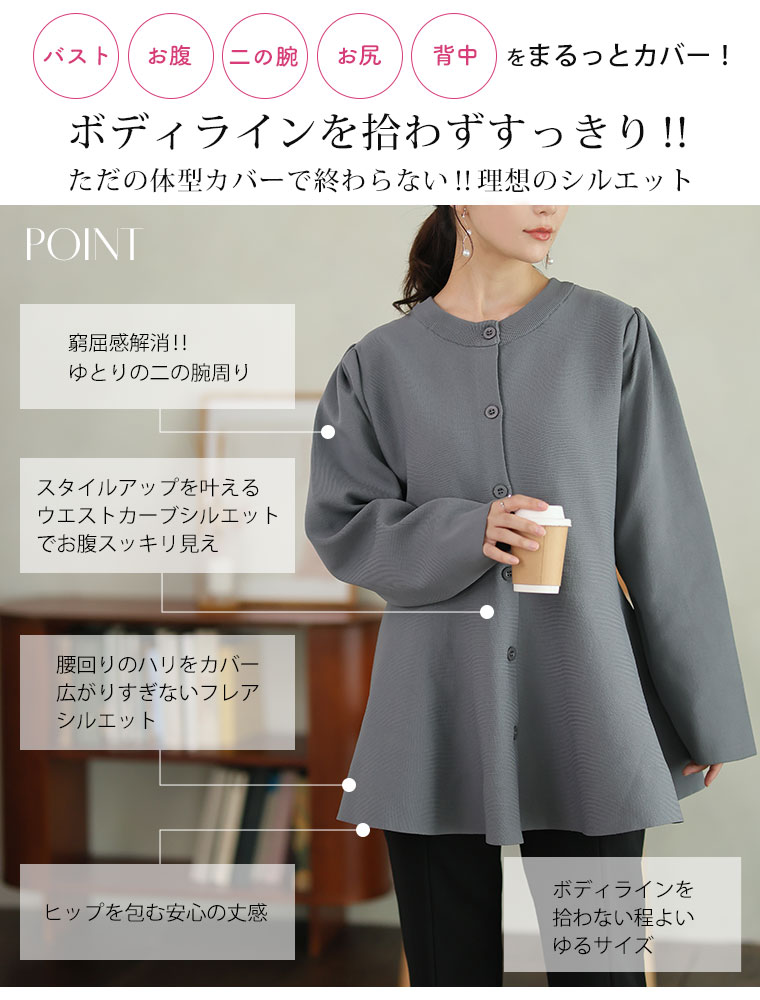 6. 大きいサイズ 嬉しい! 体型カバーと細魅せ叶える! 着痩せ美人な ペプラム ニット カーデ チュニック