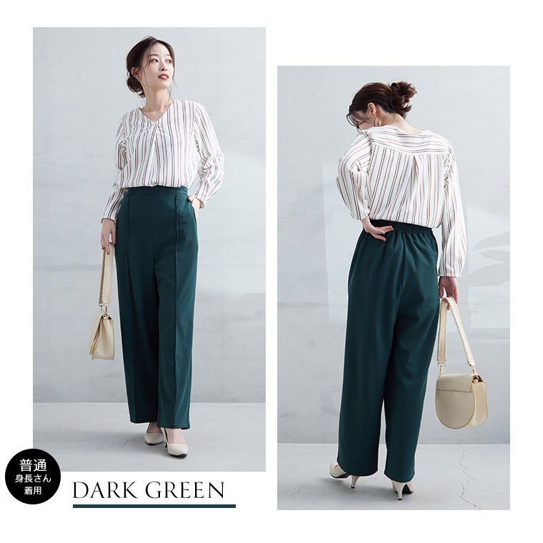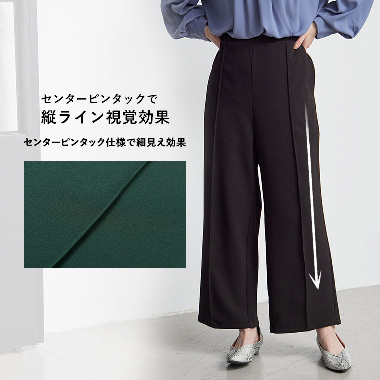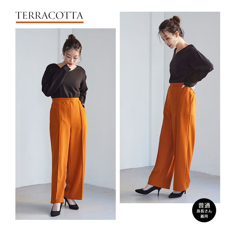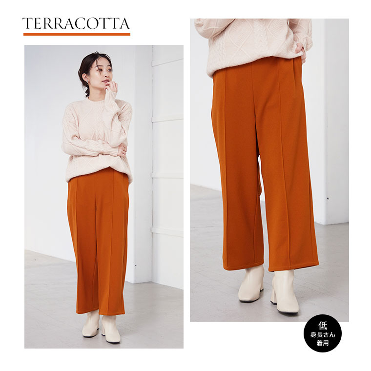 身長別カットジョーゼット裏起毛ストレートパンツ