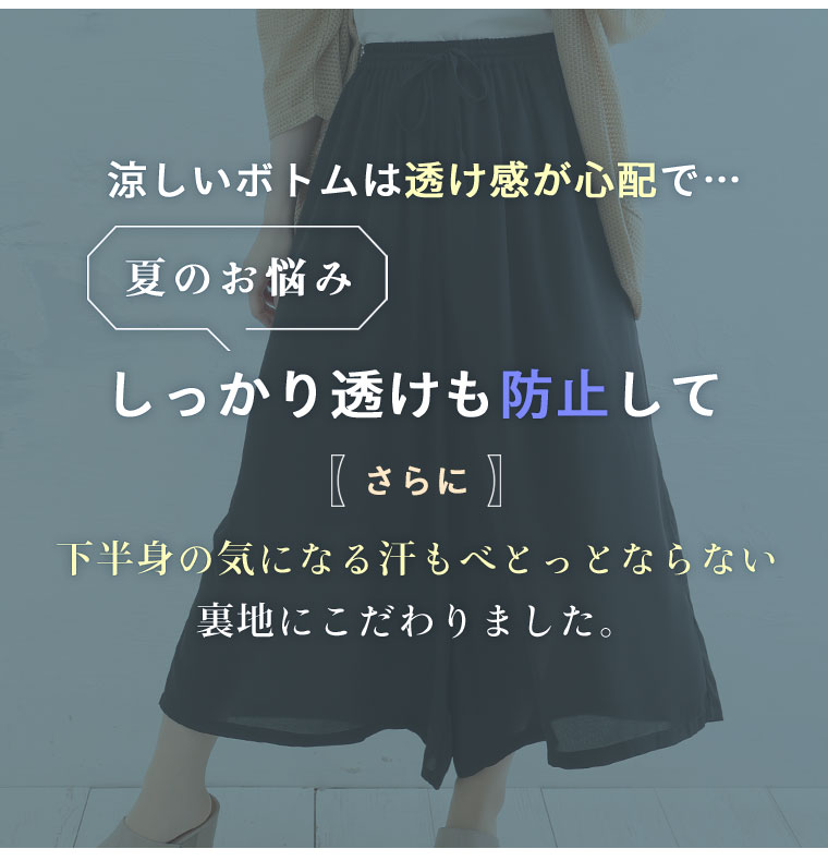汗のべたつきからさようなら!なめらか裏地付きスカーチョ