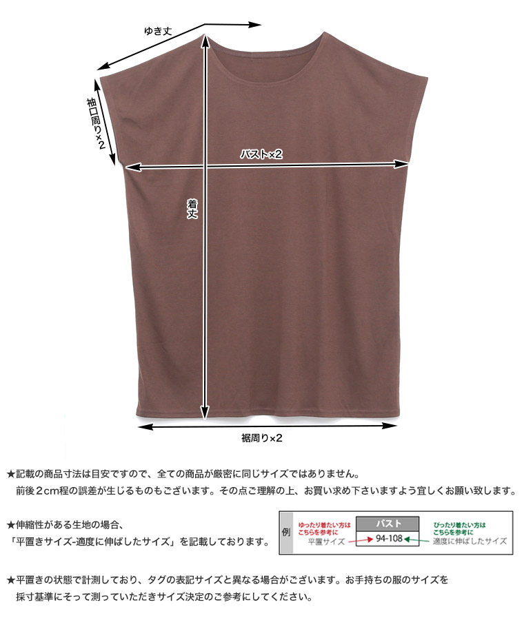 サイズ単位:cm 着丈 バスト ゆき丈 袖口周り 裾周り 素材/透け感