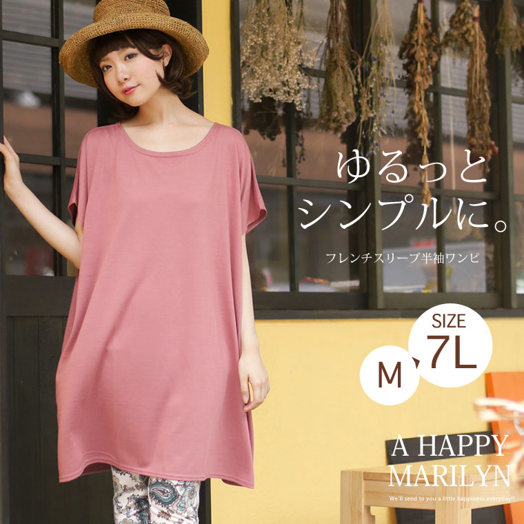 オリジナル ワンピ LL 3L 4L 5L 6L 7L 【オススメ】 新色追加!! フレンチスリーブ 半袖 ワンピース