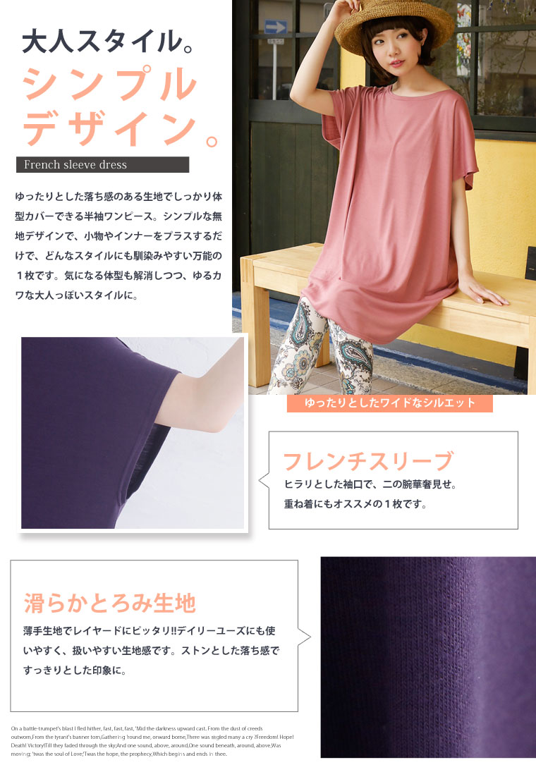 4. 大きいサイズ 【オススメ】 新色追加!! フレンチスリーブ 半袖 ワンピース