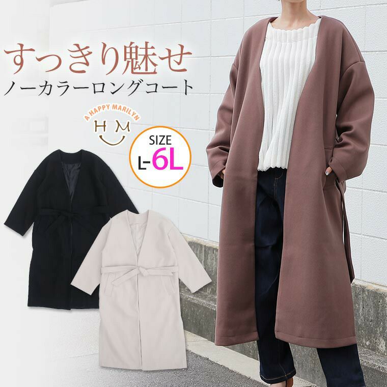 スッキリ美人にコーディネート。ノーカラーデザインコート