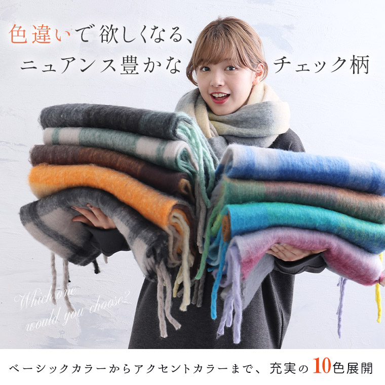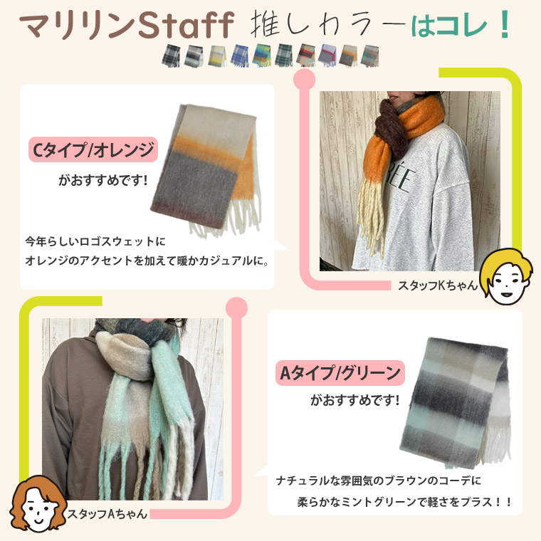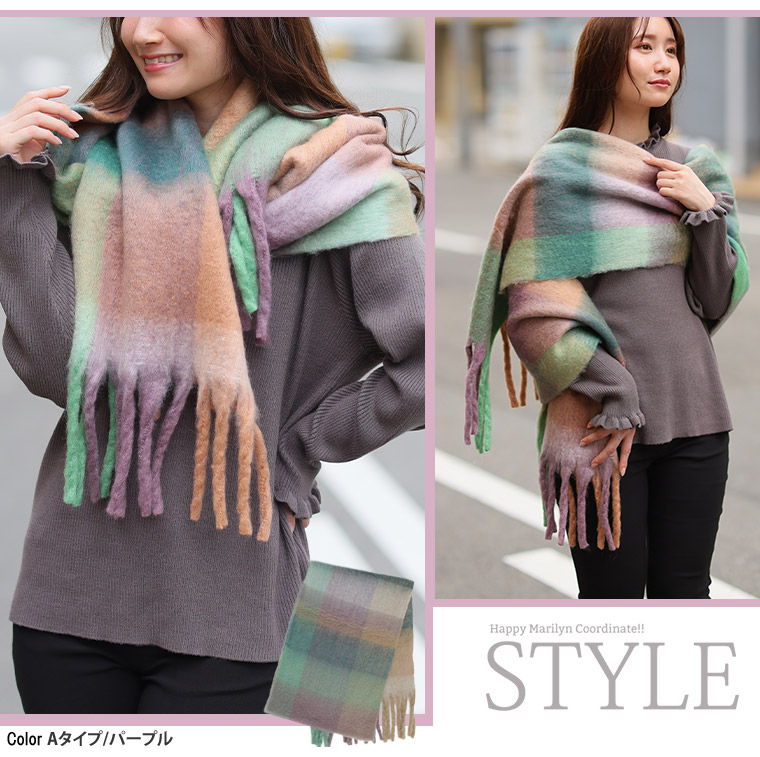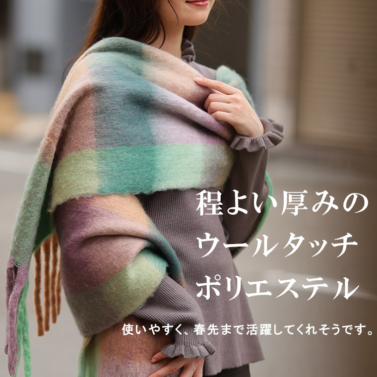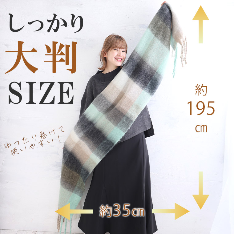 大きめサイズだから巻き方も自由自在!コーディネートに合わせて楽しめます