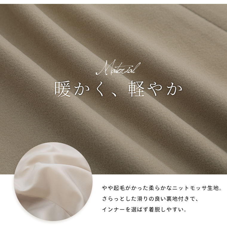暖かくで軽やかな素材で着やすい。ゆったり羽織れてバックヨークが印象的