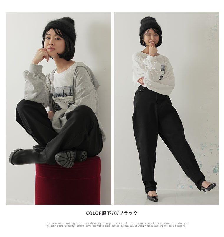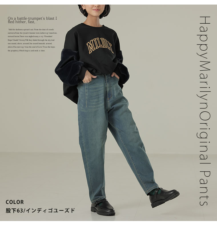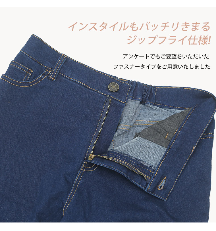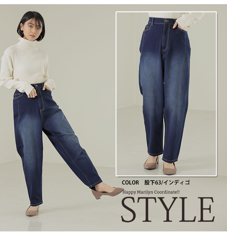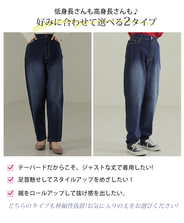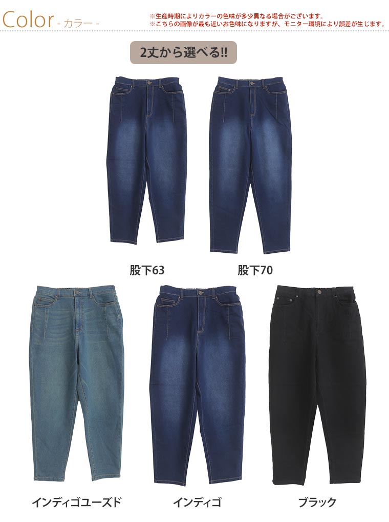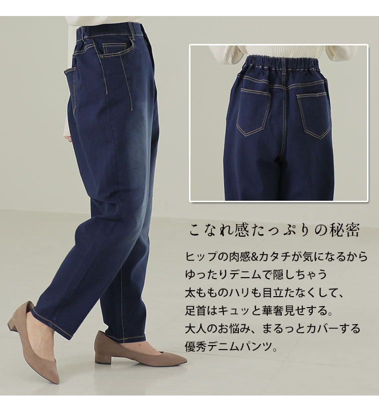 股下63cmと70cmから選べる ウエスト総ゴムじゃないのびのびテーパードデニムパンツ