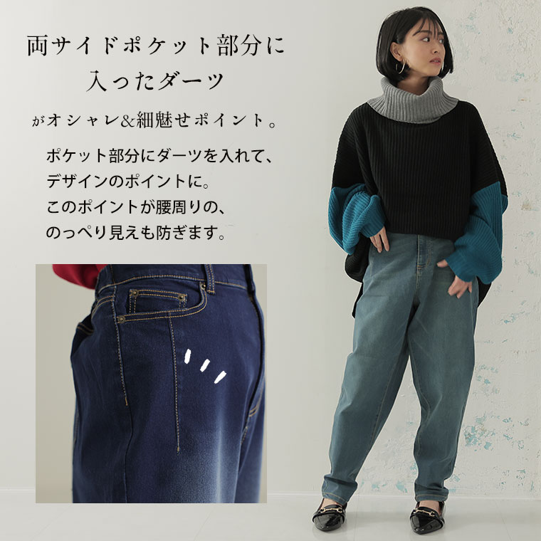 大きいサイズ 「大きいサイズ着用の企画者が作りました!」ウエスト総ゴムじゃない のびのび テーパード デニム パンツ 選べる2丈
