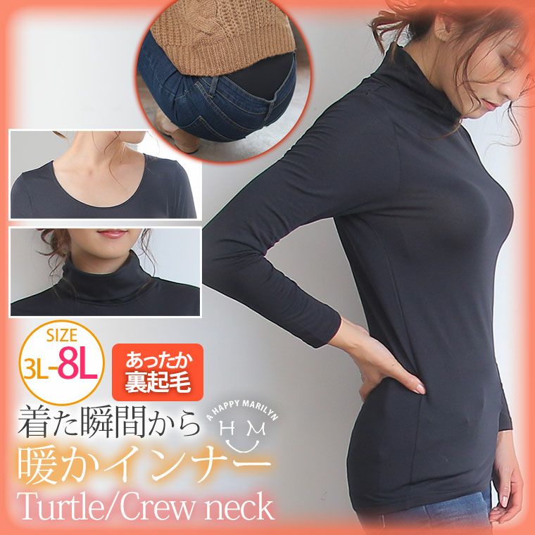 眺めの裾丈が嬉しい クルーネックとタートルネックから選べる暖かインナー