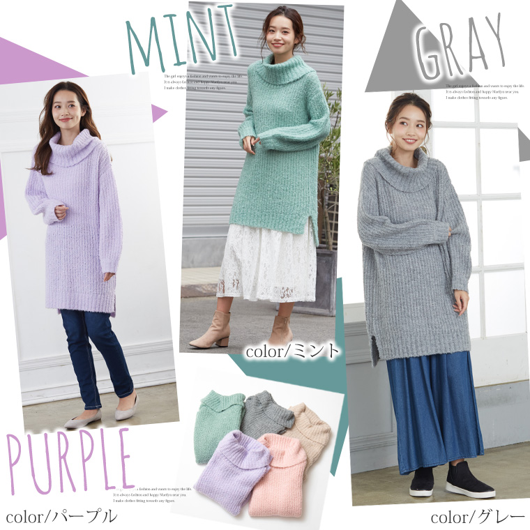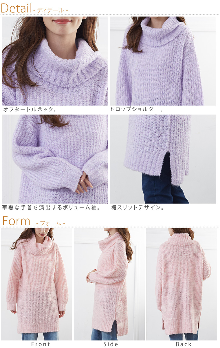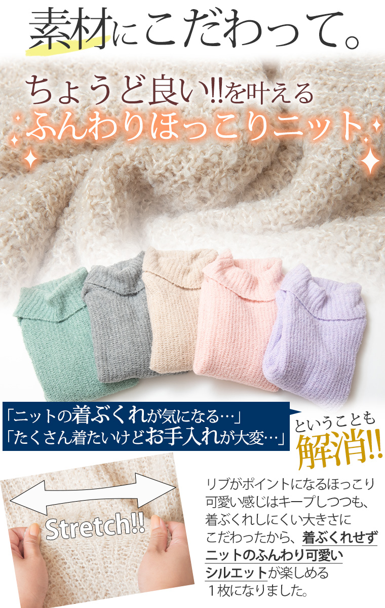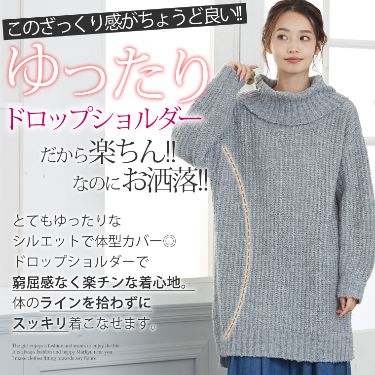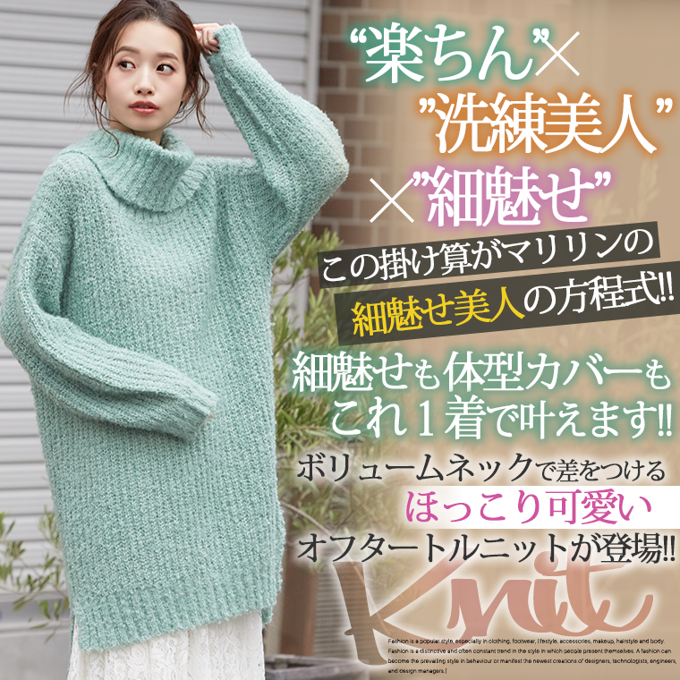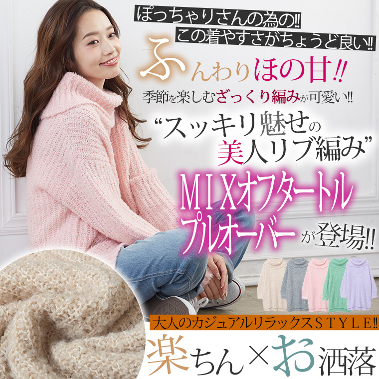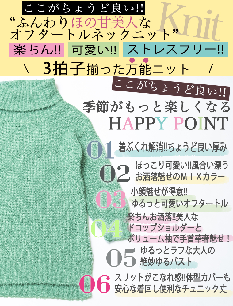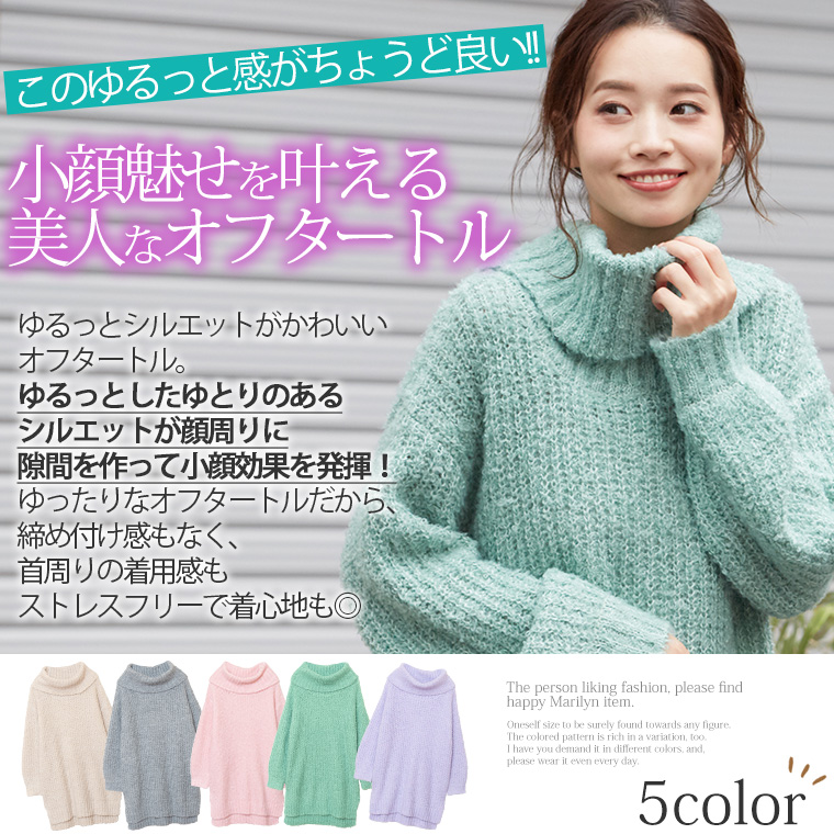 優しいニットの風合いとゆるっとラフなオフタートルが大人の上品ニット
