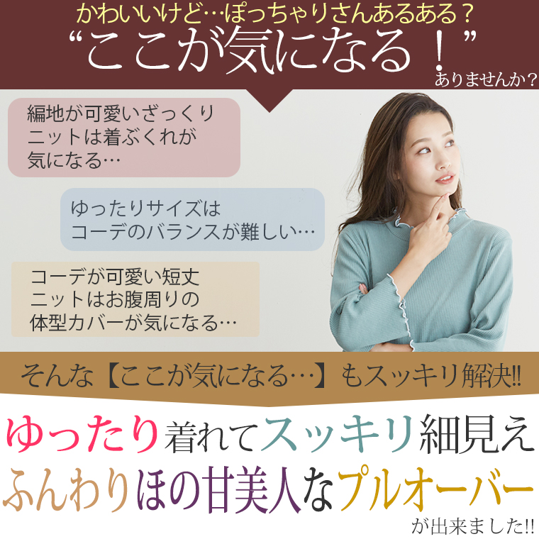 ゆるシルエットをスッキリ魅せるお洒落なスッキリ美人ニット。優しいカラーがほの甘上品な雰囲気。