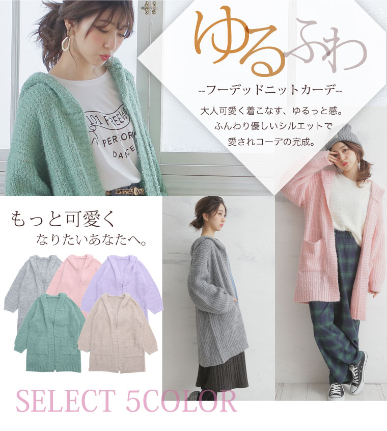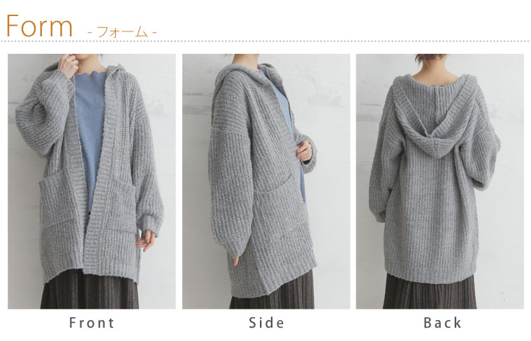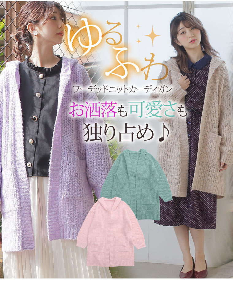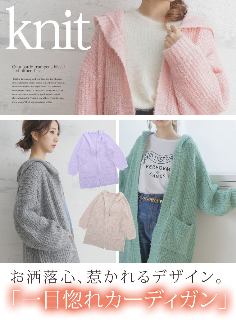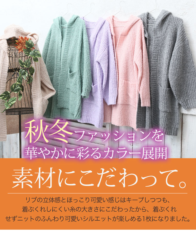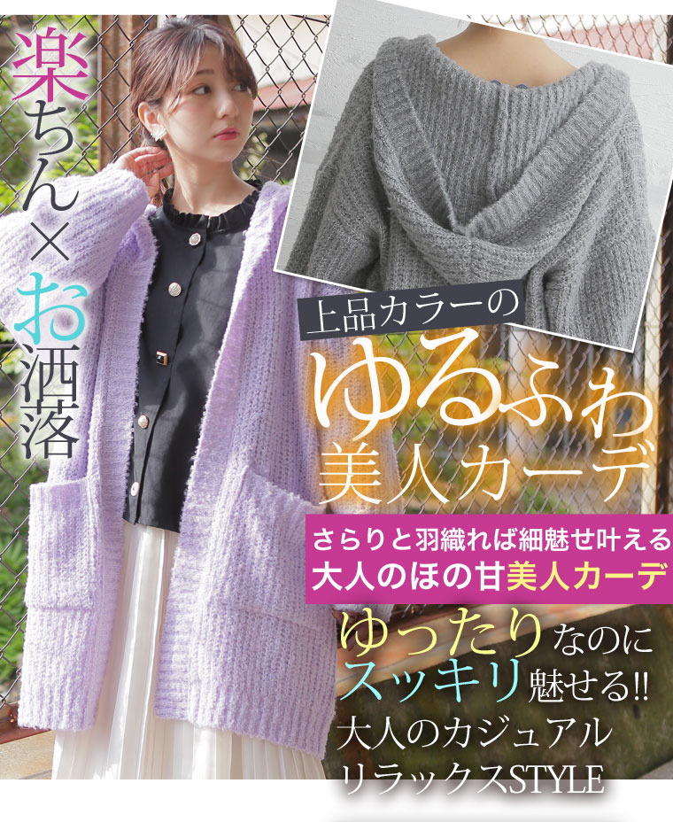 ふんわり優しいソフトタッチが魅力♪もこもこフーデッドニットカーデ