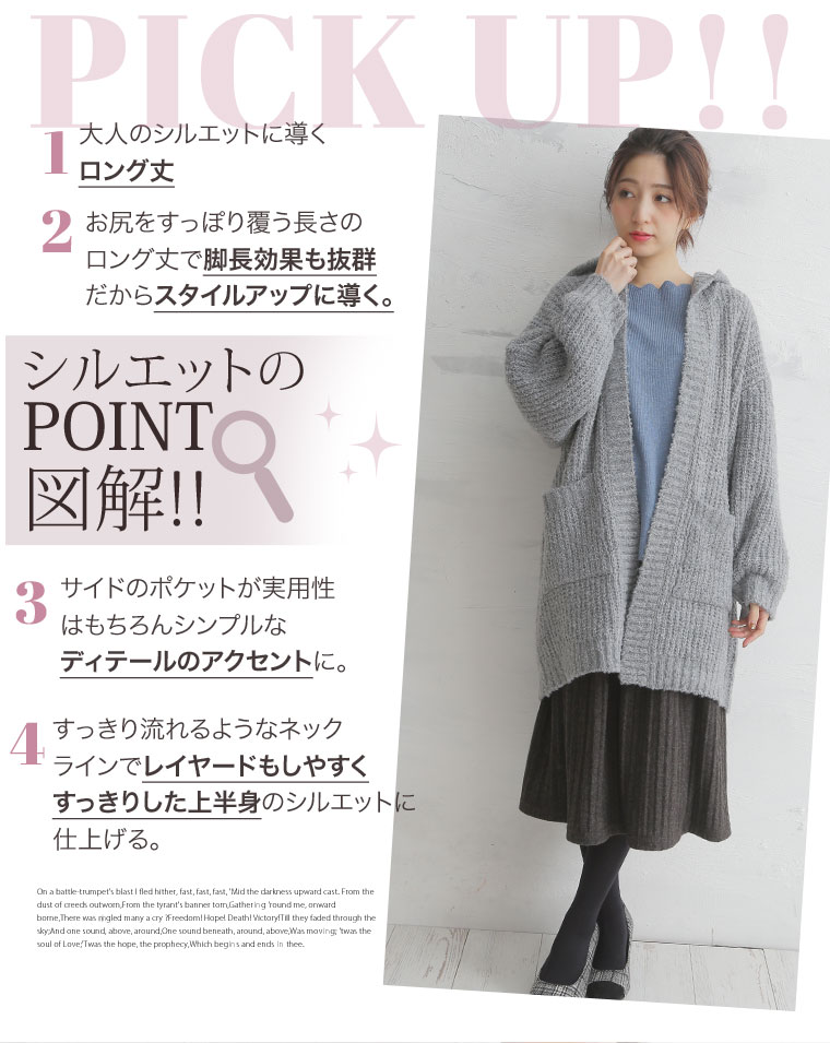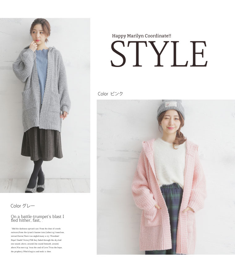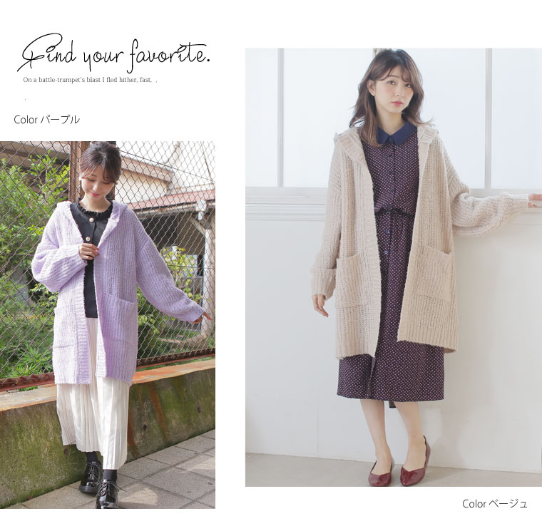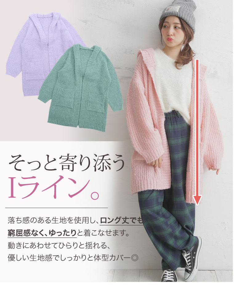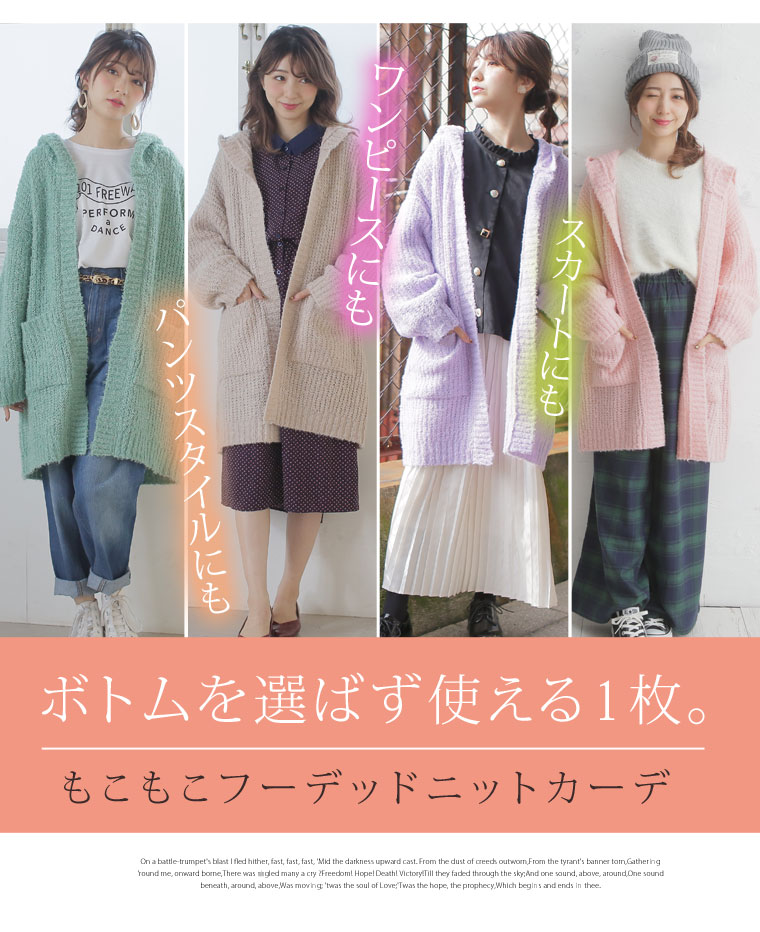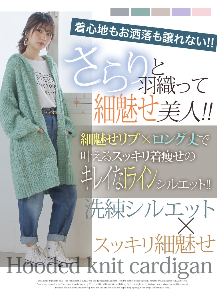 ふんわり優しいソフトタッチが魅力♪もこもこフーデッドニットカーデ