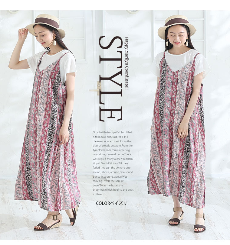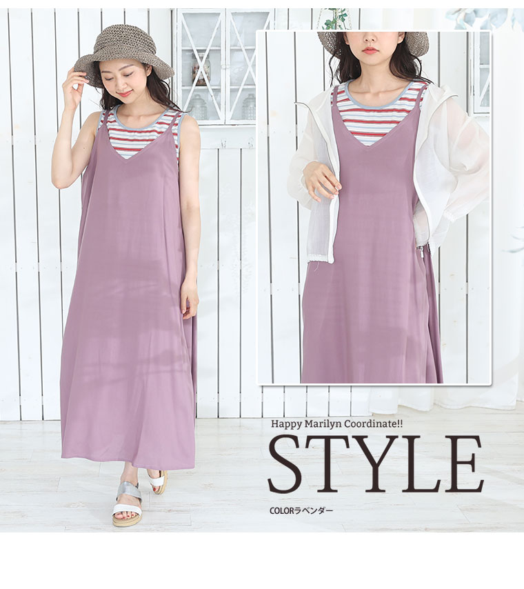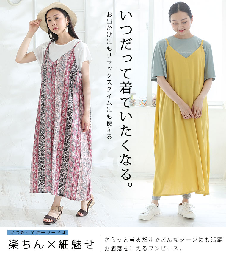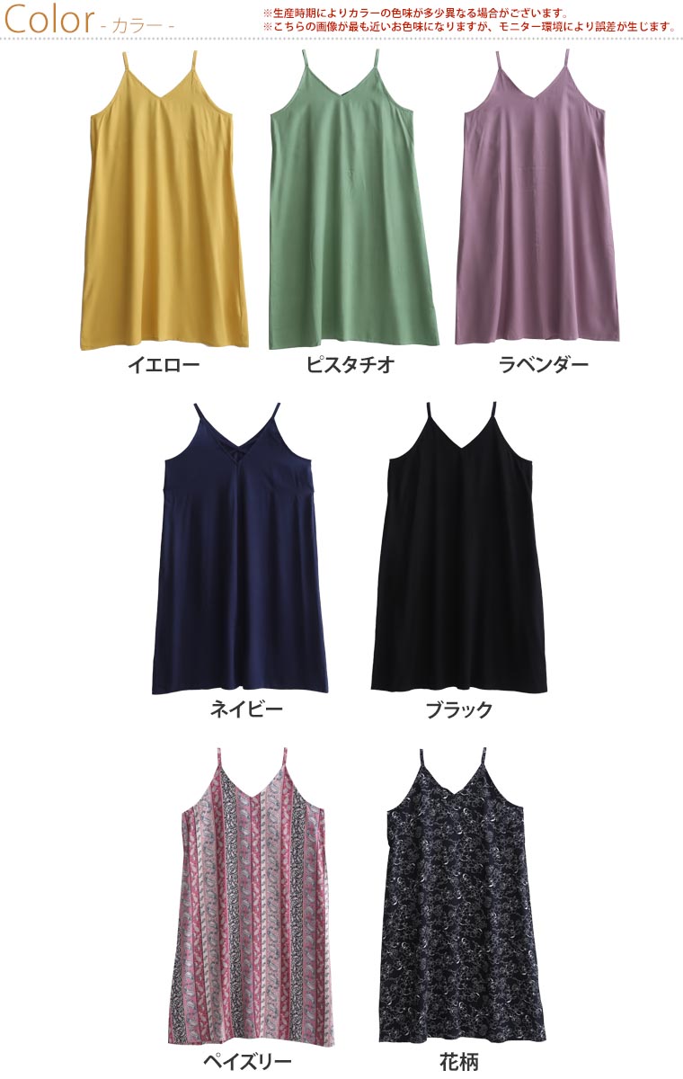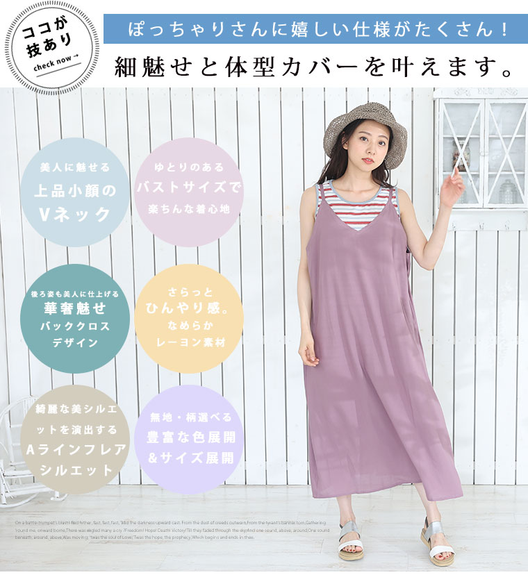 3. 大きいサイズ ひんやり 楽ちん! 無地・柄選べる 接触冷感 レーヨン 美シルエット キャミワンピ