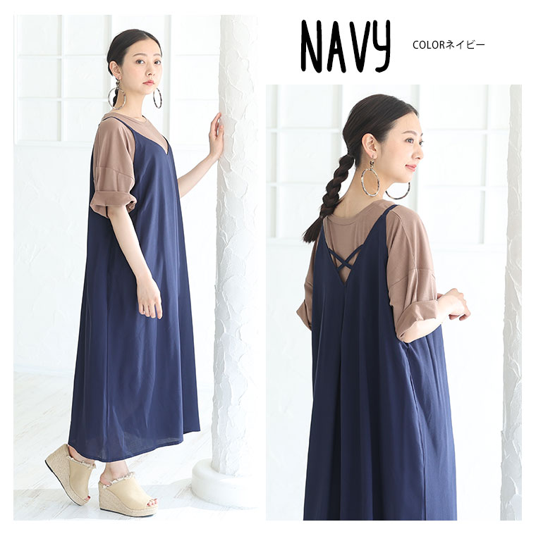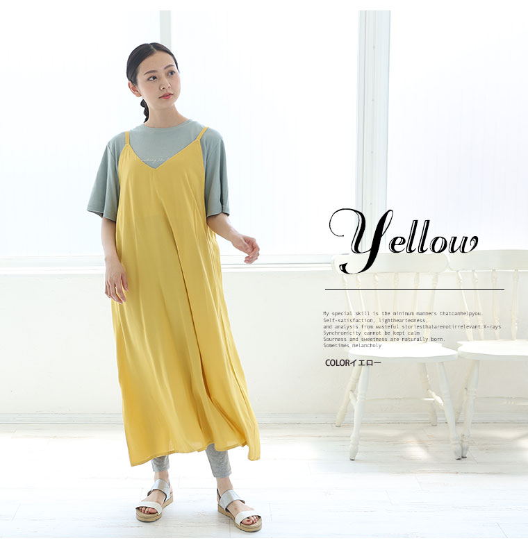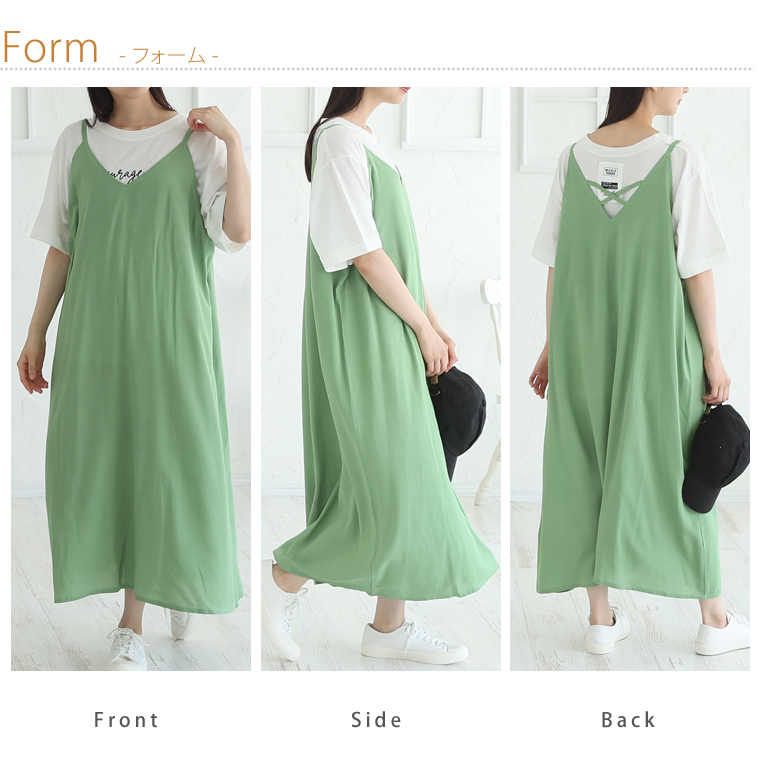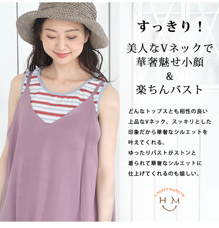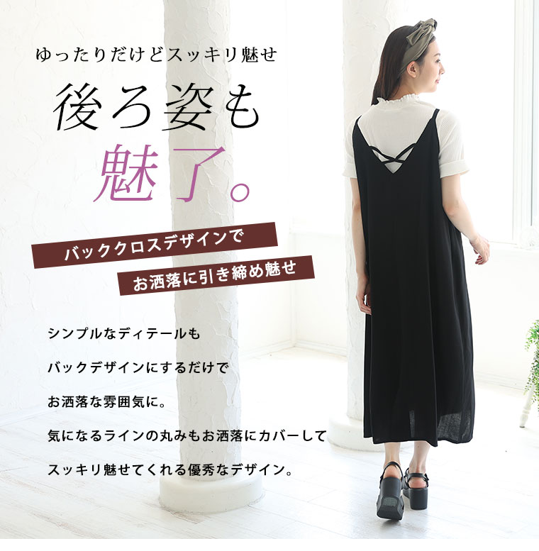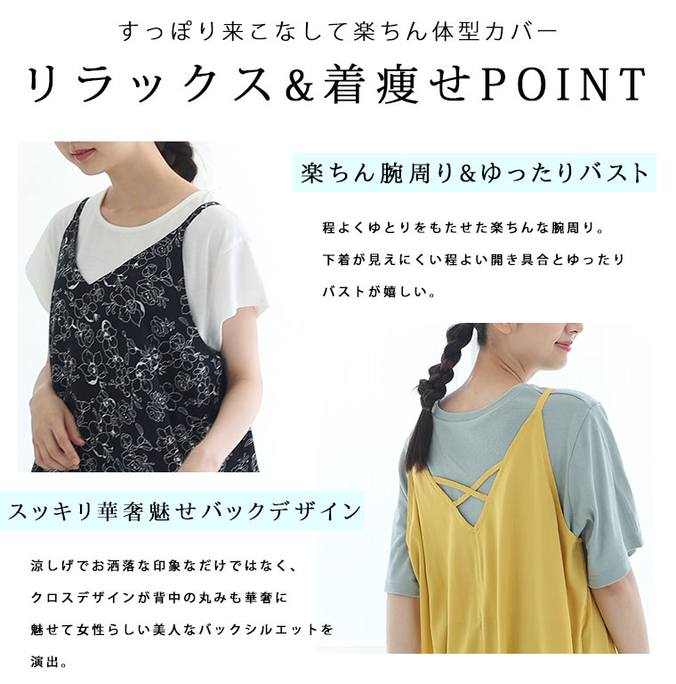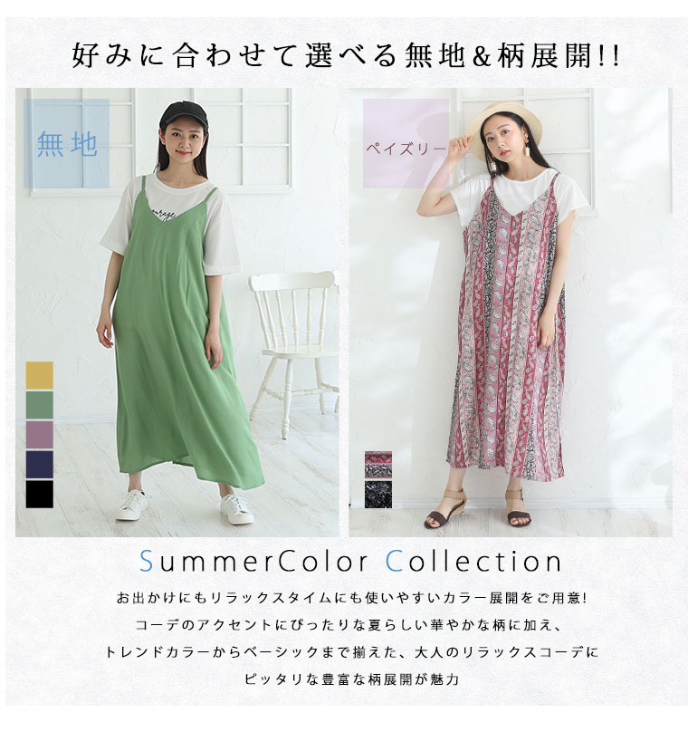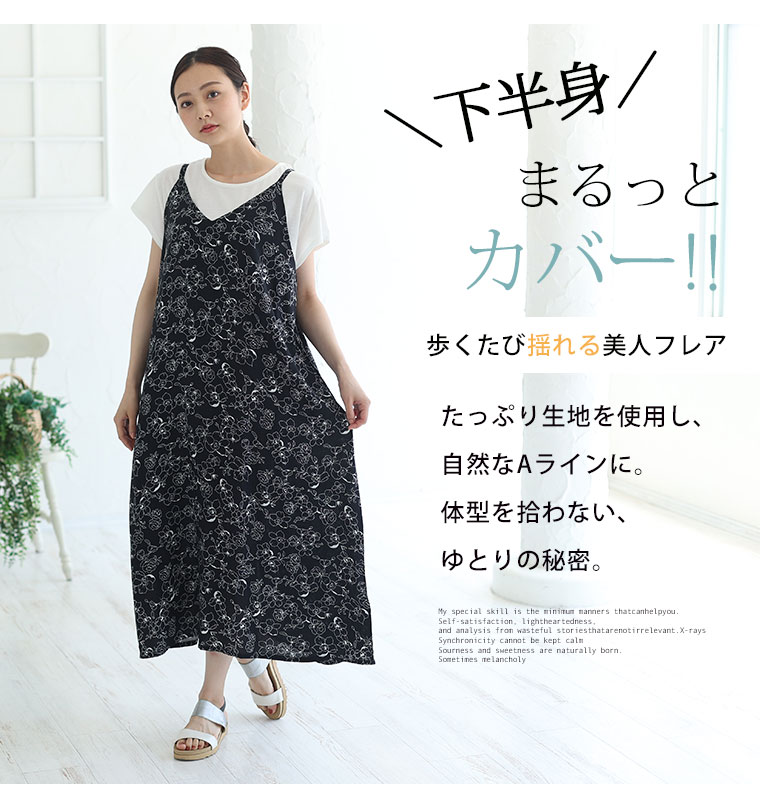 4. 大きいサイズ ひんやり 楽ちん! 無地・柄選べる 接触冷感 レーヨン 美シルエット キャミワンピ