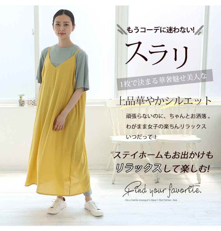 さらっとレーヨン素材で滑らかで涼しく快適な着心地が嬉しい。ふんわりAラインでしっかり体型カバー。