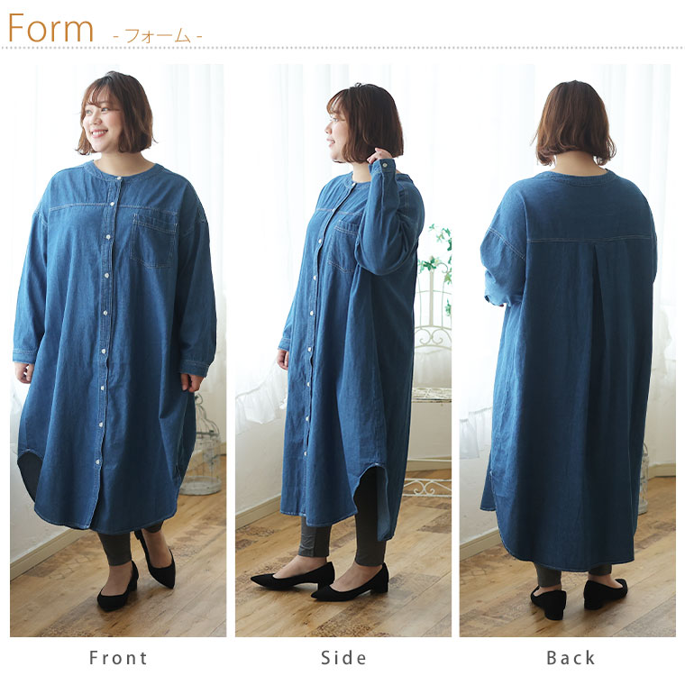 4. 大きいサイズ 羽織に丁度良い 薄軽 デニム の シャツワンピース