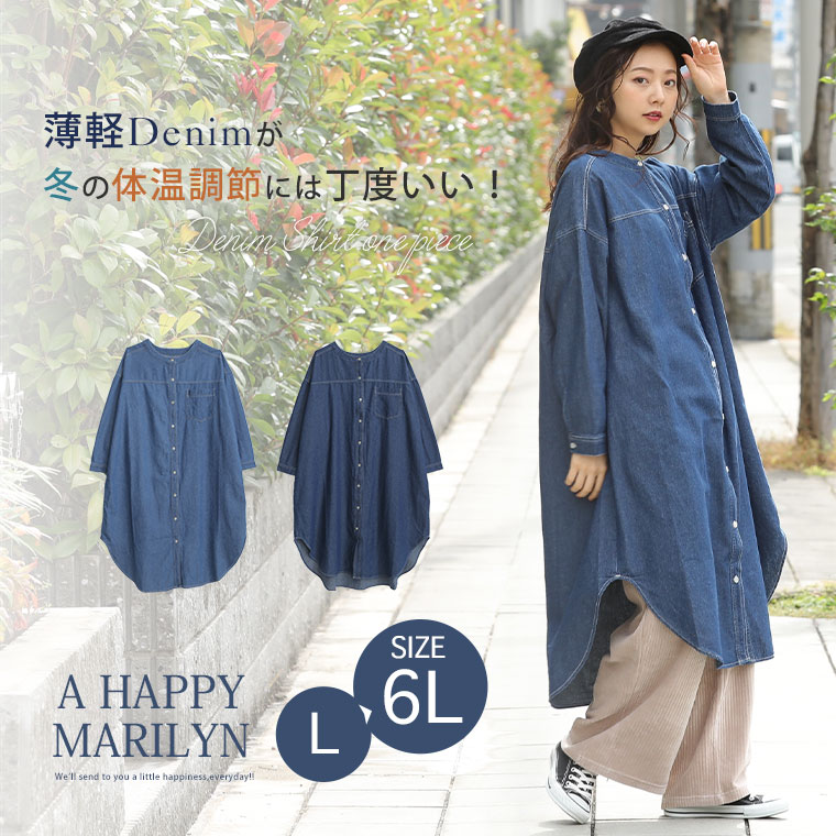 大きいサイズ 羽織に丁度良い 薄軽 デニム の シャツワンピース