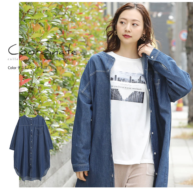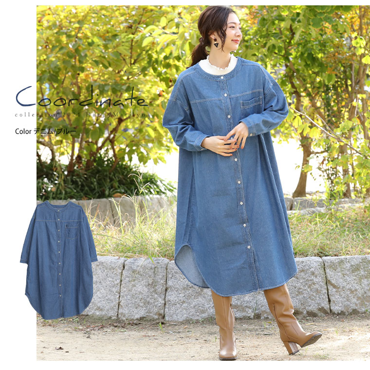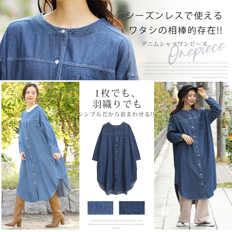 羽織りに丁度いい 薄軽デニムのシャツワンピース
