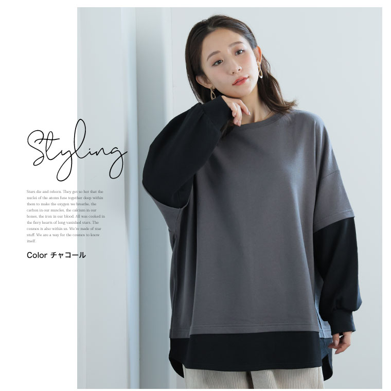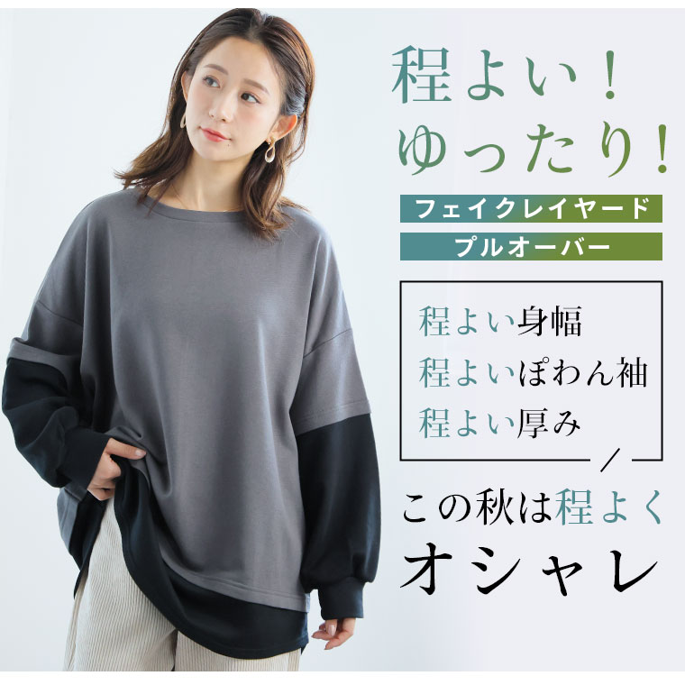 一枚でお洒落なスウェット。フェイクレイヤードプルオーバー