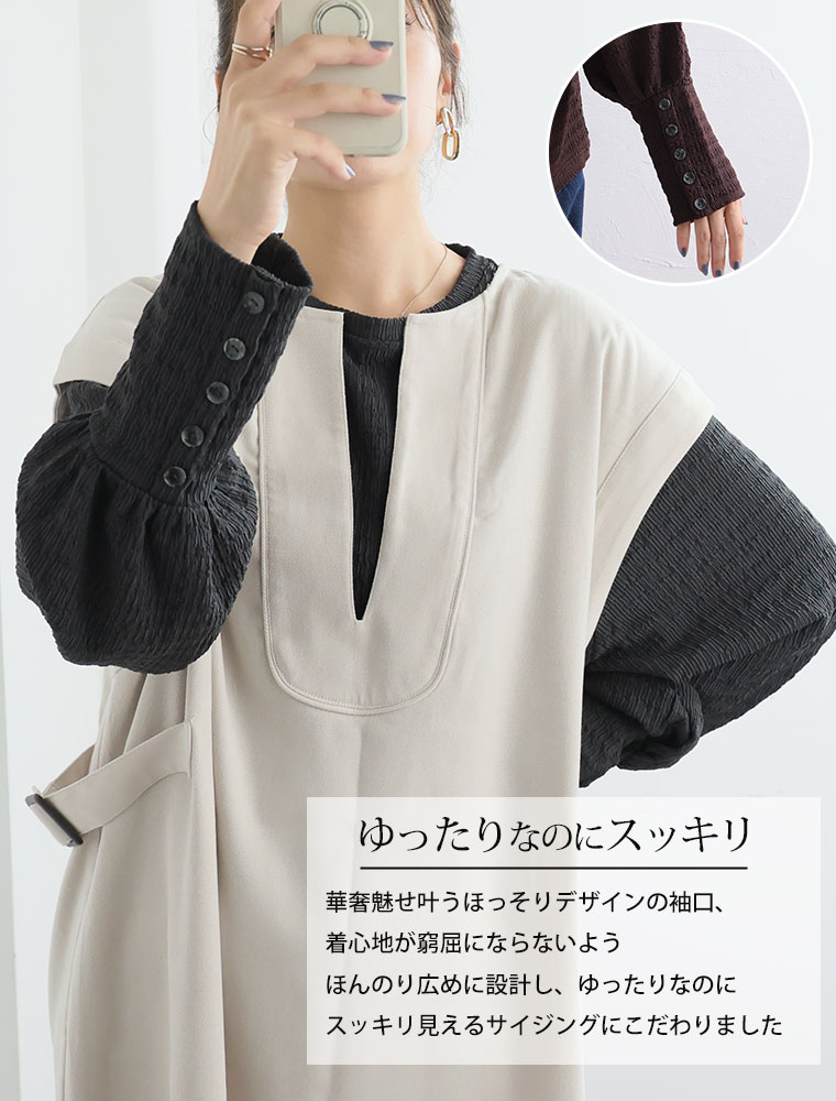 袖のリブ部分のメリハリで着るだけ華奢魅せが叶う