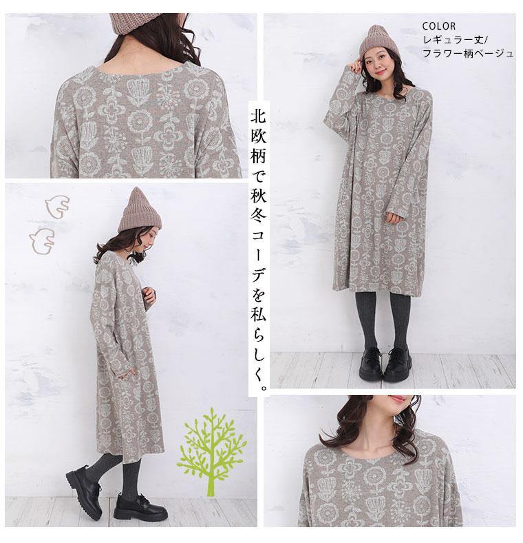 大人ナチュラルリラックス!丈が選べるあったか起毛ワンピース