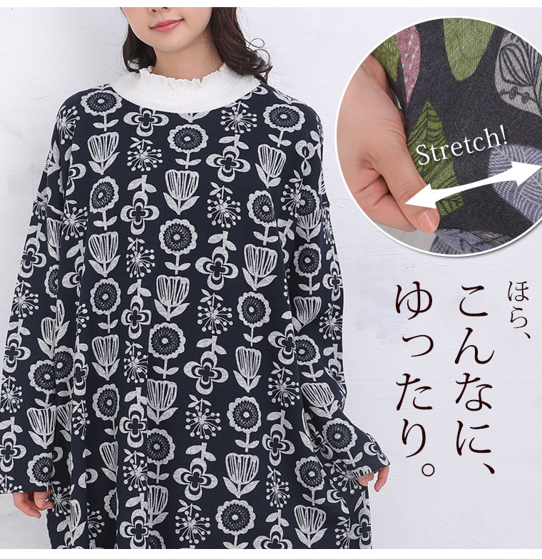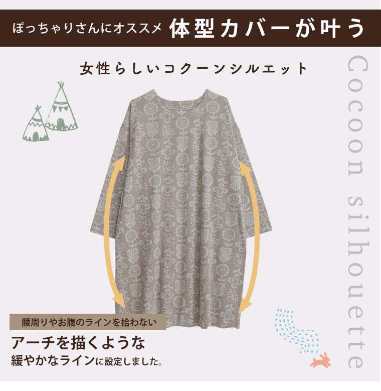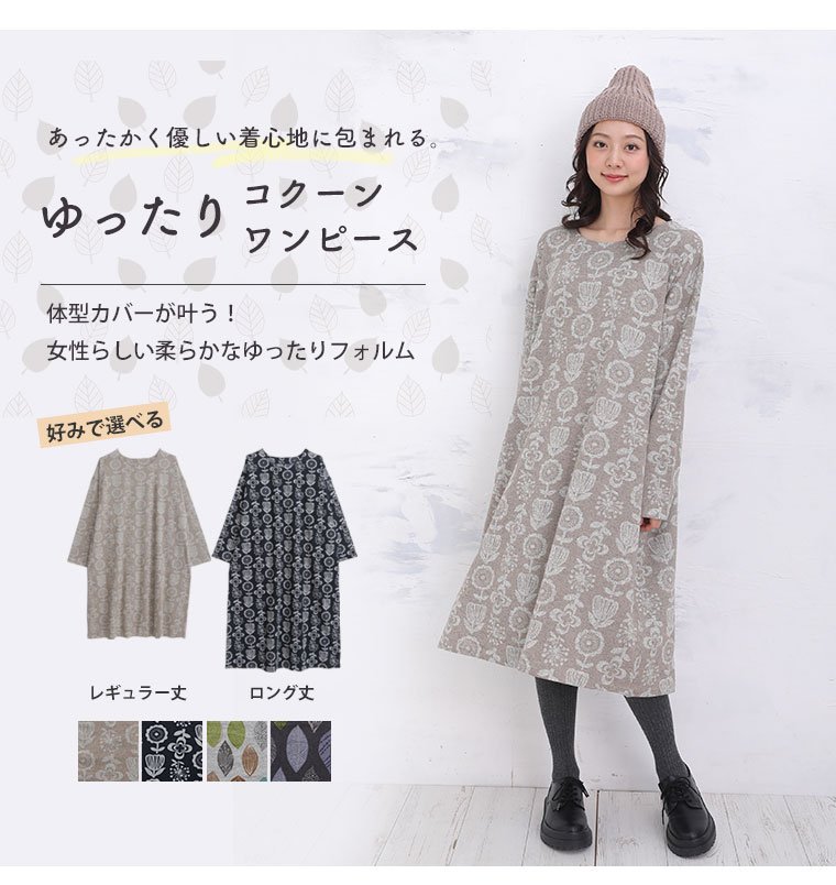 ふんわりあったか優しい着心地に包まれる体のラインを拾わない細魅せコクーンワンピース