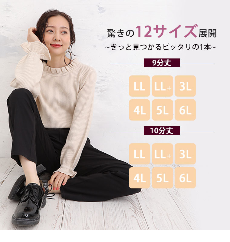 身長155ほど、普段は4L着用 仕事用に10分丈4Lを購入しました。 普段着ている物の股下サイズと当商品の股下サイズと比べてから10分丈を選びましたが、実際着用するとかなり裾が余ってしまったので5センチほど上げしました……。 履き心地はとても良いです。太ももとふくらはぎがかなり太いのですが程よくフィットするので動きやすいです。