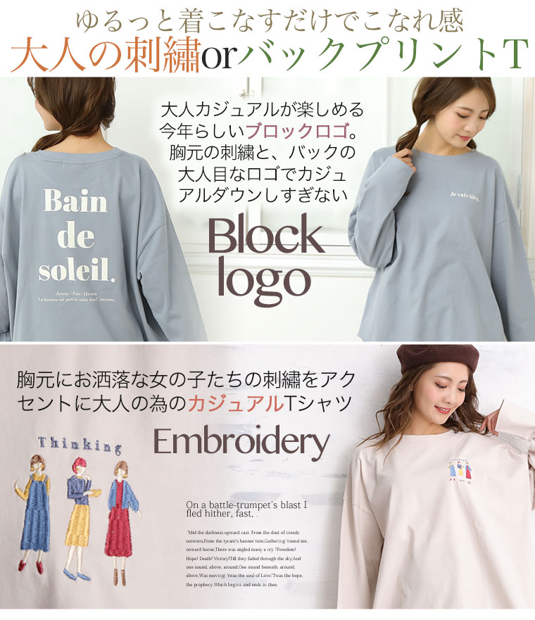 綿100%で着心地抜群♪しっかりコットンのロゴor刺繍ゆるロンT