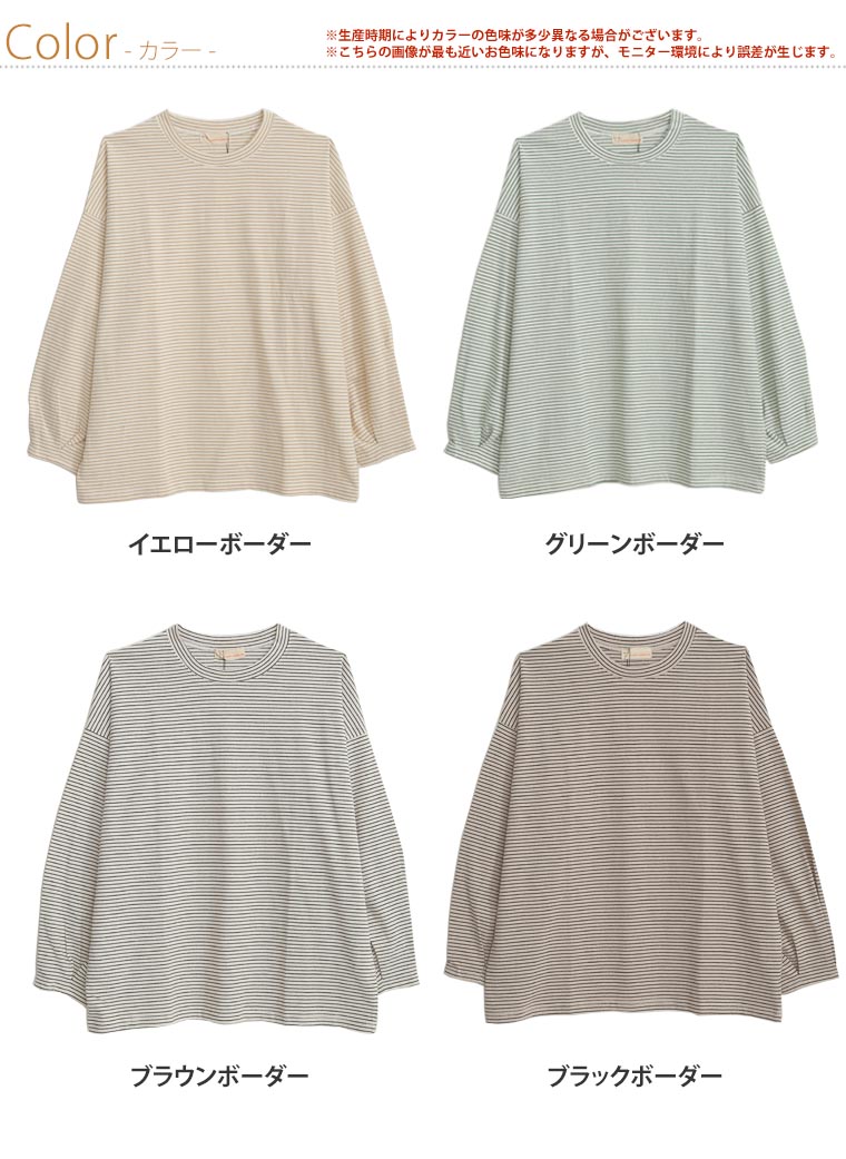 オリジナル カットソー ロンT ロングTシャツ LL 3L 4L 5L 6L 秋 秋物 秋冬 ぽっちゃり ゆったり かわいい おしゃれ カジュアル プラスサイズ パフっと可愛い バルーンスリーブ 長袖 ボーダー Tシャツ