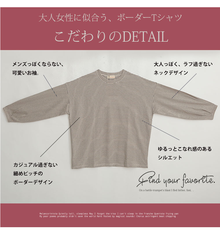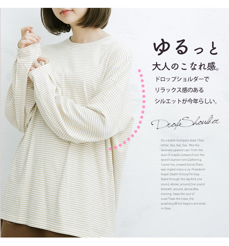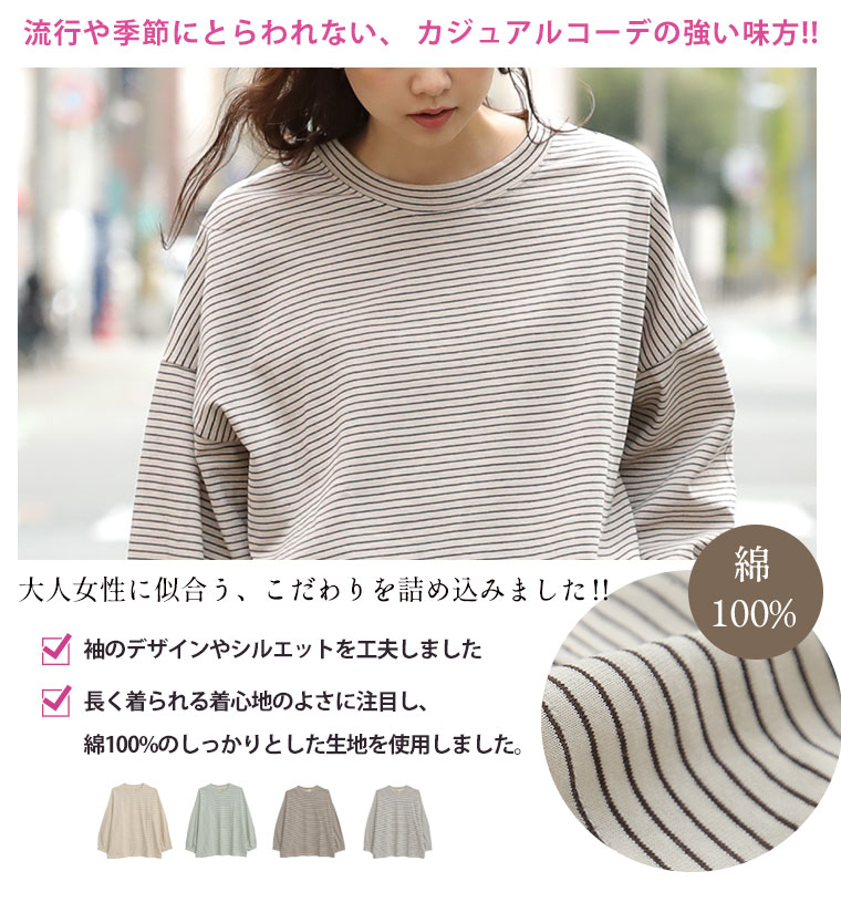 とてもゆったりと着用することができました。綿100%なので着心地がとてもいいです!ボーダーなのでちょっとした差しアクセントにちょうどいいですね!