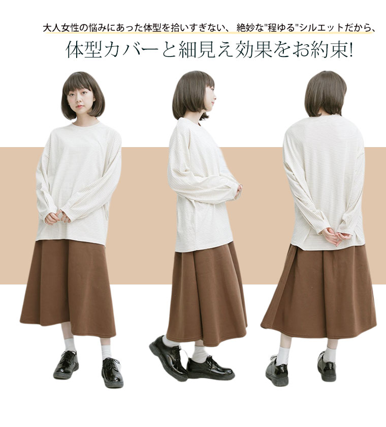ゆったり楽ちんシルエットです。お尻もすっぽり隠れます。