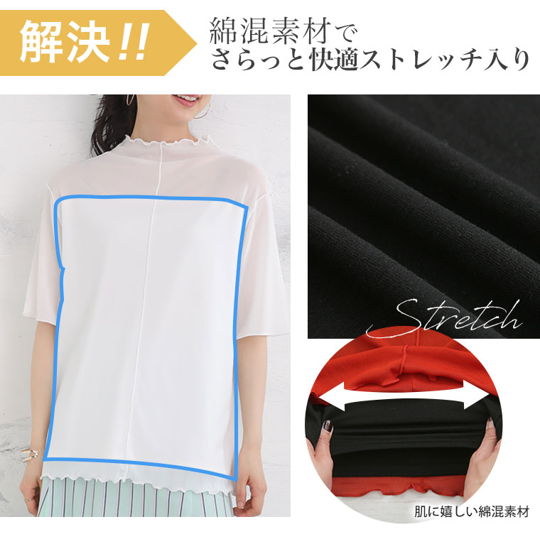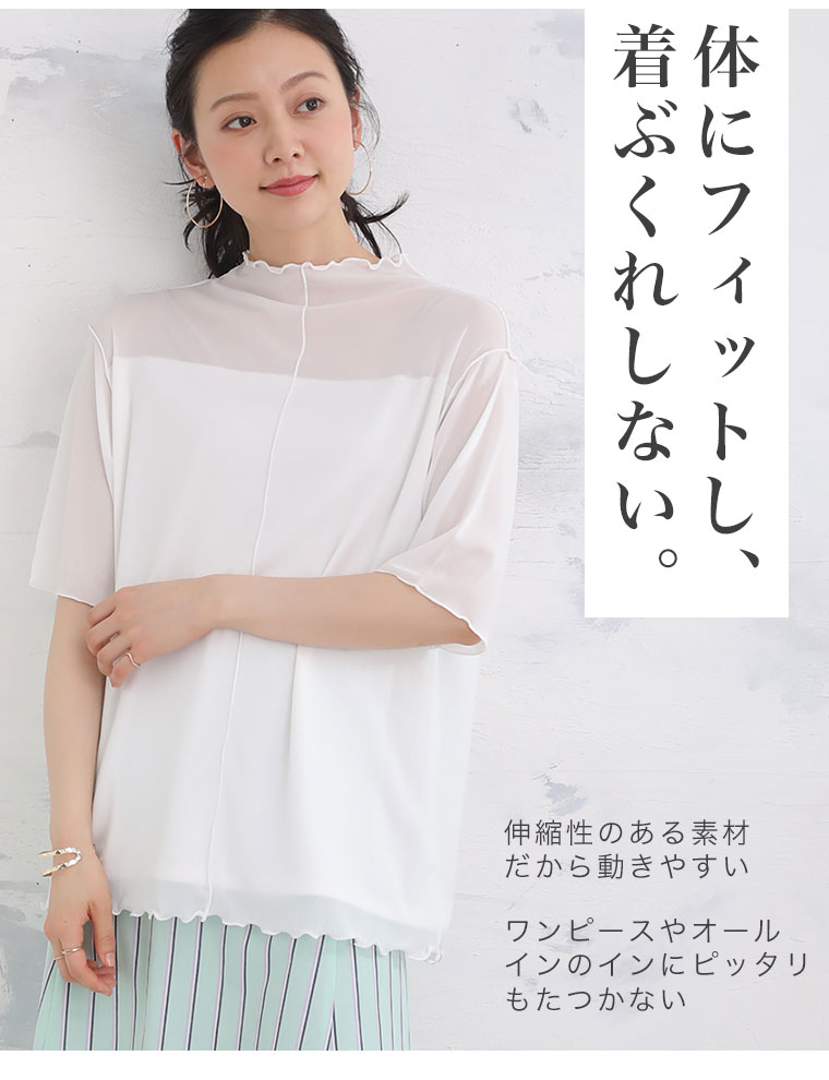 Tシャツより大人っぽく!裏地付きが嬉しい半袖シアートップス